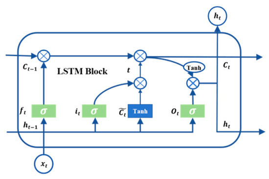 In 1997, LSTM was proposed by Hochreiter and Schmidhuber, addressing the long-term dependency issues inherent in RNNs through the incorporation of forget gates, input gates, and output gates. The architectural structure of the LSTM neural network model is illustrated in Figure 6.