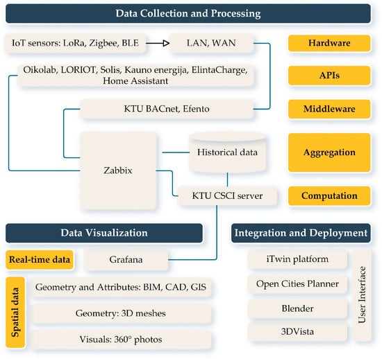 - OpenCities Planner. Kaunas City Digital Twin. Available online: https://eu.opencitiesplanner.bentley.com/www_ktu_edu/kaunasdigitalcity-stage1 (accessed on 6 May 2025).