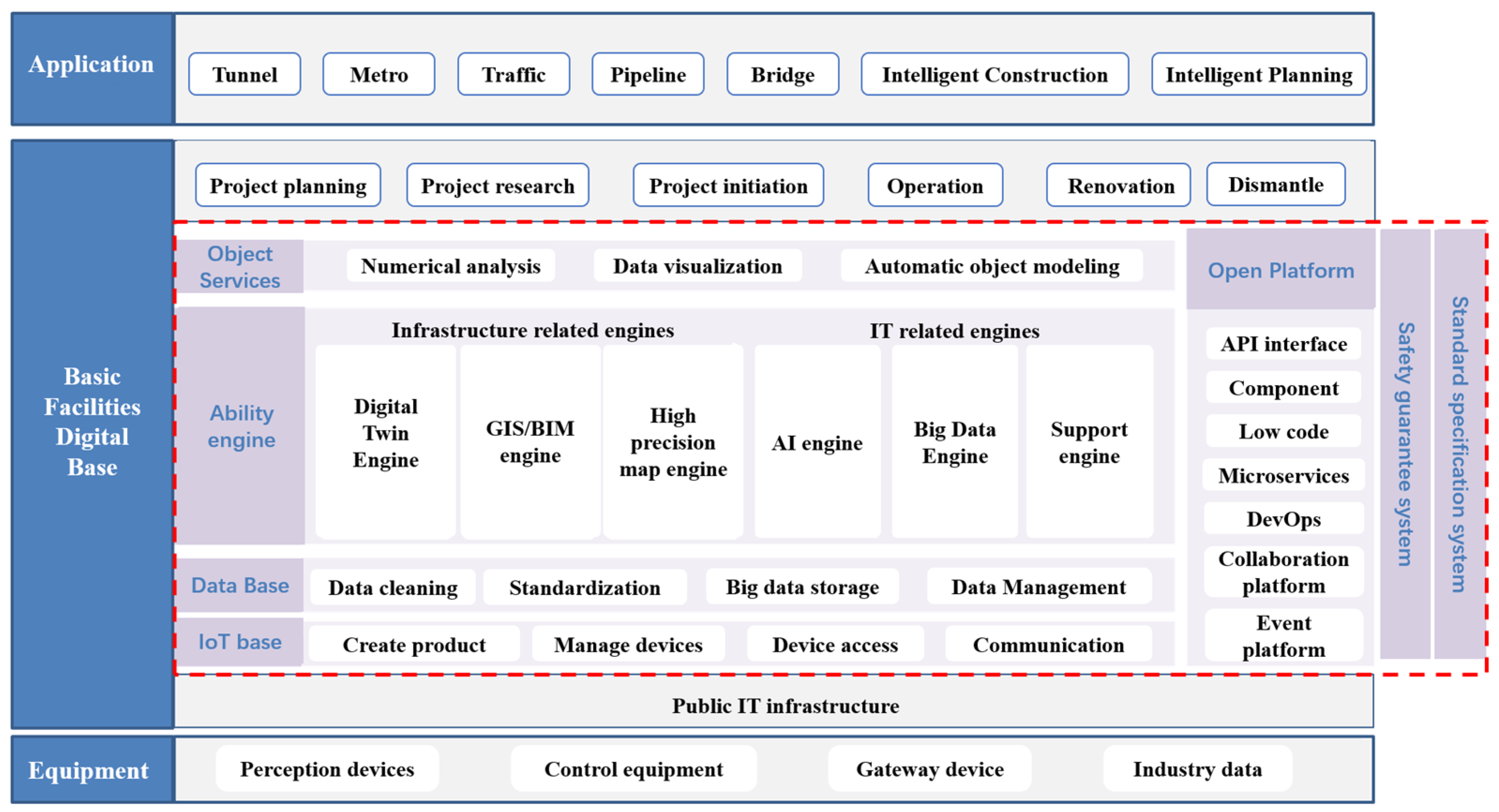 Figure 3) is built upon an underlying framework that equally emphasizes information technology and professional capabilities, grounded in a unified ‘Digital Twin’ model of infrastructure. It supports infrastructure data lifecycle services, including access, processing, representation, analysis, and decision-making. The prefabricated station digital twin platform serves as a configurable PaaS platform, delivering essential IT capabilities and domain-specific functionalities. This platform facilitates the rapid standardized construction of digital infrastructure, supports the efficient development of various smart applications, and enables the entire lifecycle management of digital construction and station operations.