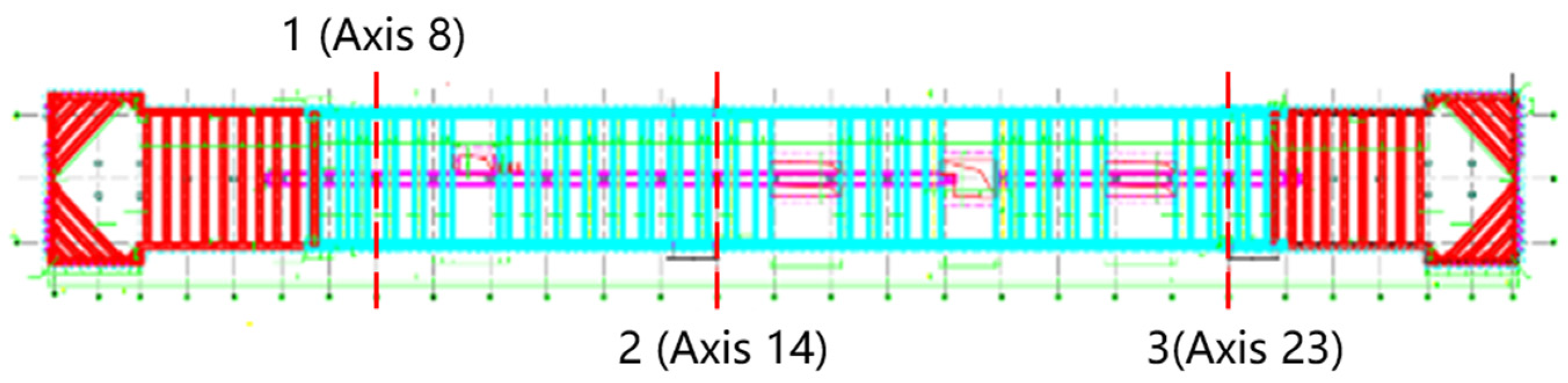 Figure 14). This phase adopted a prefabricated scheme featuring pile-wall compositing, prefabricated retaining piles, cast-in-place sidewalls, composite roof slabs, and prefabricated supports. The roof slab utilized a hybrid prefabricated and cast-in-place approach. This method leveraged the retaining structure to participate in the load-bearing of the main structure, enhancing its utilization rate. It achieved refined design and cost reduction, providing innovative solutions for green metro construction.