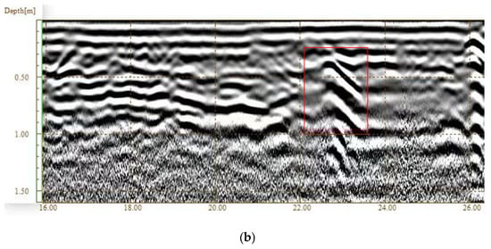 Typical images of GPR: (a) Intact structure; (b) Structure void.