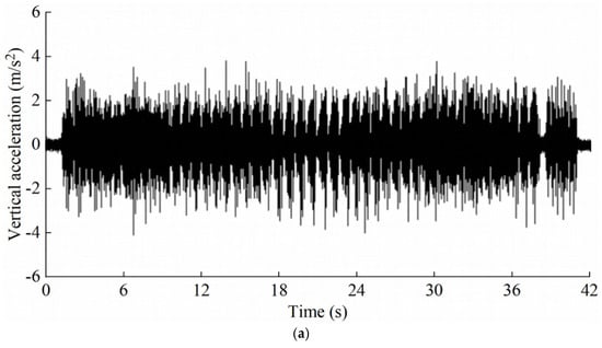 Finally, a comparative analysis between normal and void-defect sections confirms that structural voids exacerbate the tunnel’s dynamic response across all tested axle loads. At measurement point A2, the introduction of a void defect caused a significant increase in peak acceleration: by 26.3% under a 25 t axle load (from 2.96 m/s2 to 3.66 m/s2), by 26.0% under a 27 t axle load (from 3.27 m/s2 to 4.12 m/s2), and by 23.1% under a 30 t axle load (from 4.11 m/s2 to 5.06 m/s2). These findings collectively demonstrate that the combined effect of increased axle loads and pre-existing structural defects, such as voids, can critically compromise the stability and serviceability of the track foundation.