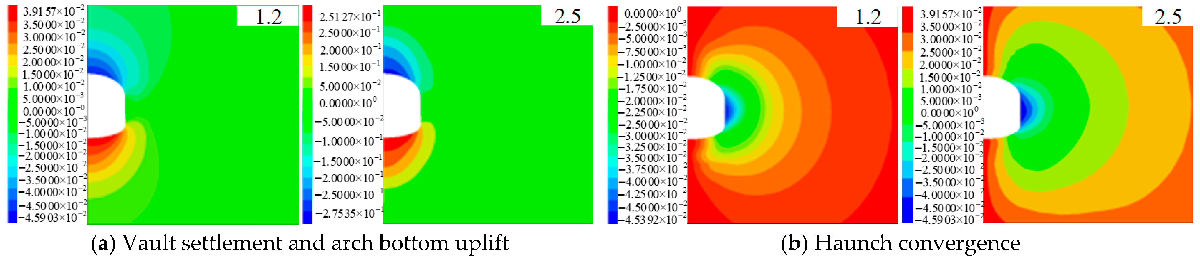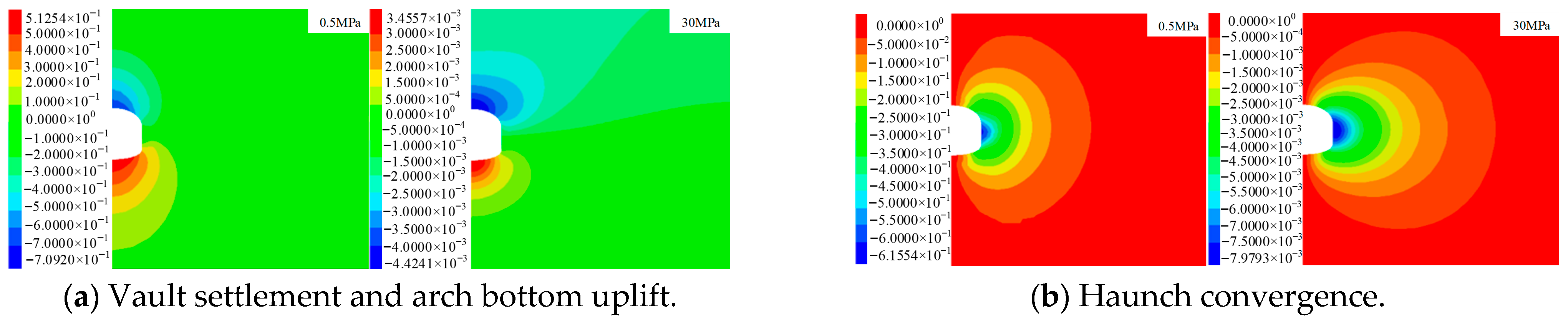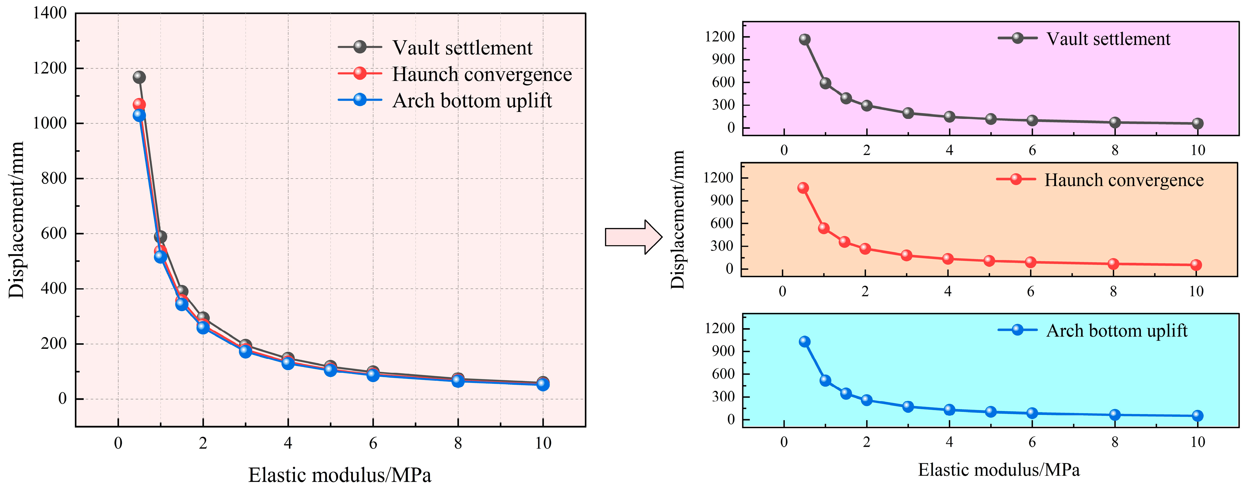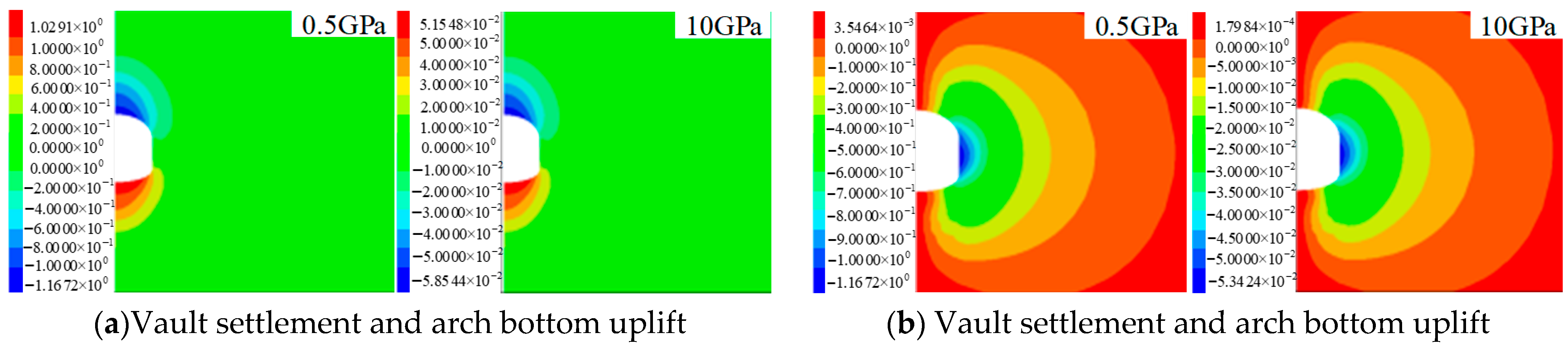 4.2. Influence of Elastic Modulus of Surrounding Rock