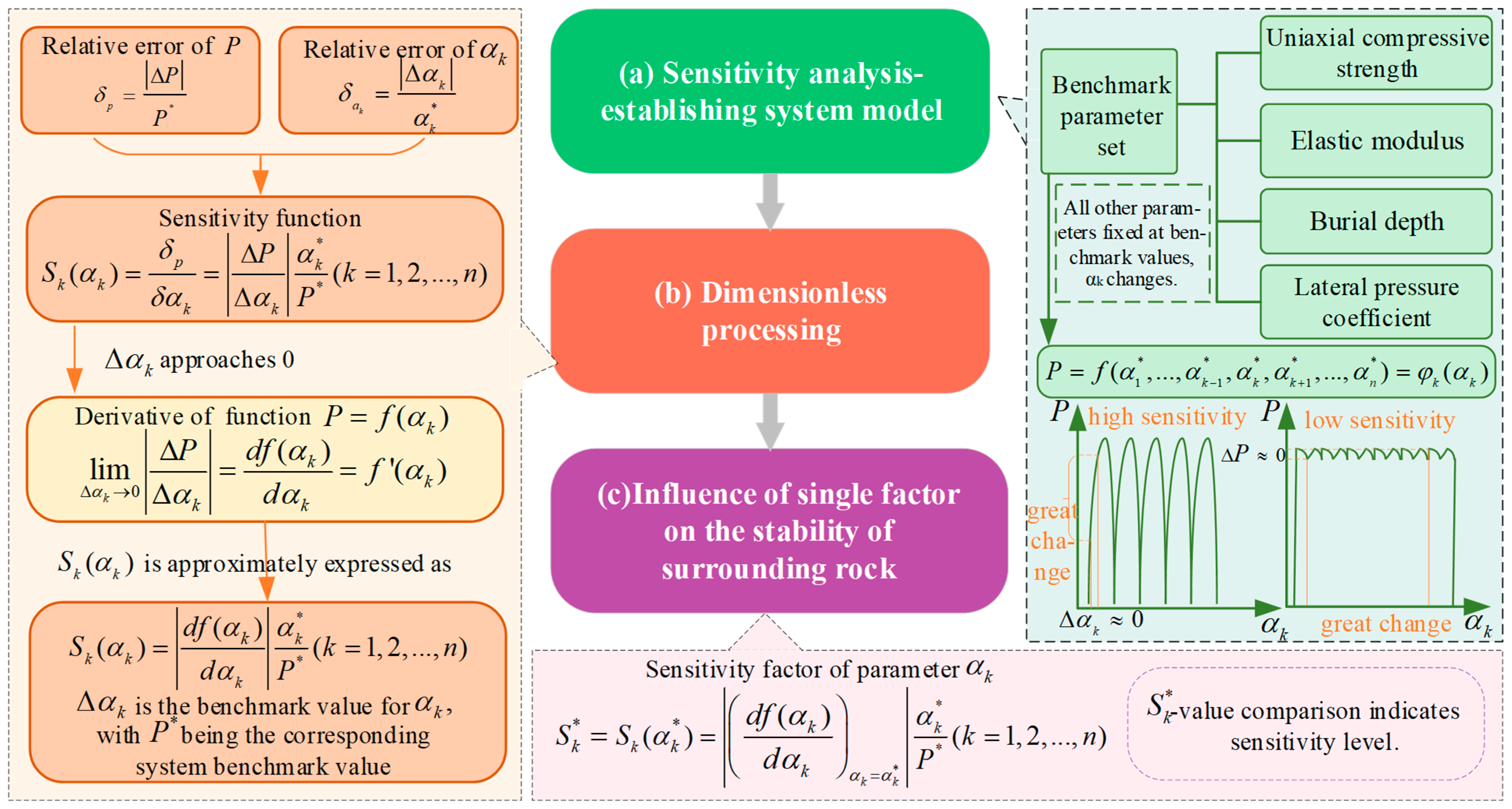 - Yang, Y.S.; Zhang, D.M.; Chen, X.; Zhao, Y. Sensitivity analysis of rock mechanics parameters in stability of tunnel surrounding rock. Energy Sources Part A 2024, 46, 2567–2580. [Google Scholar] [CrossRef]
