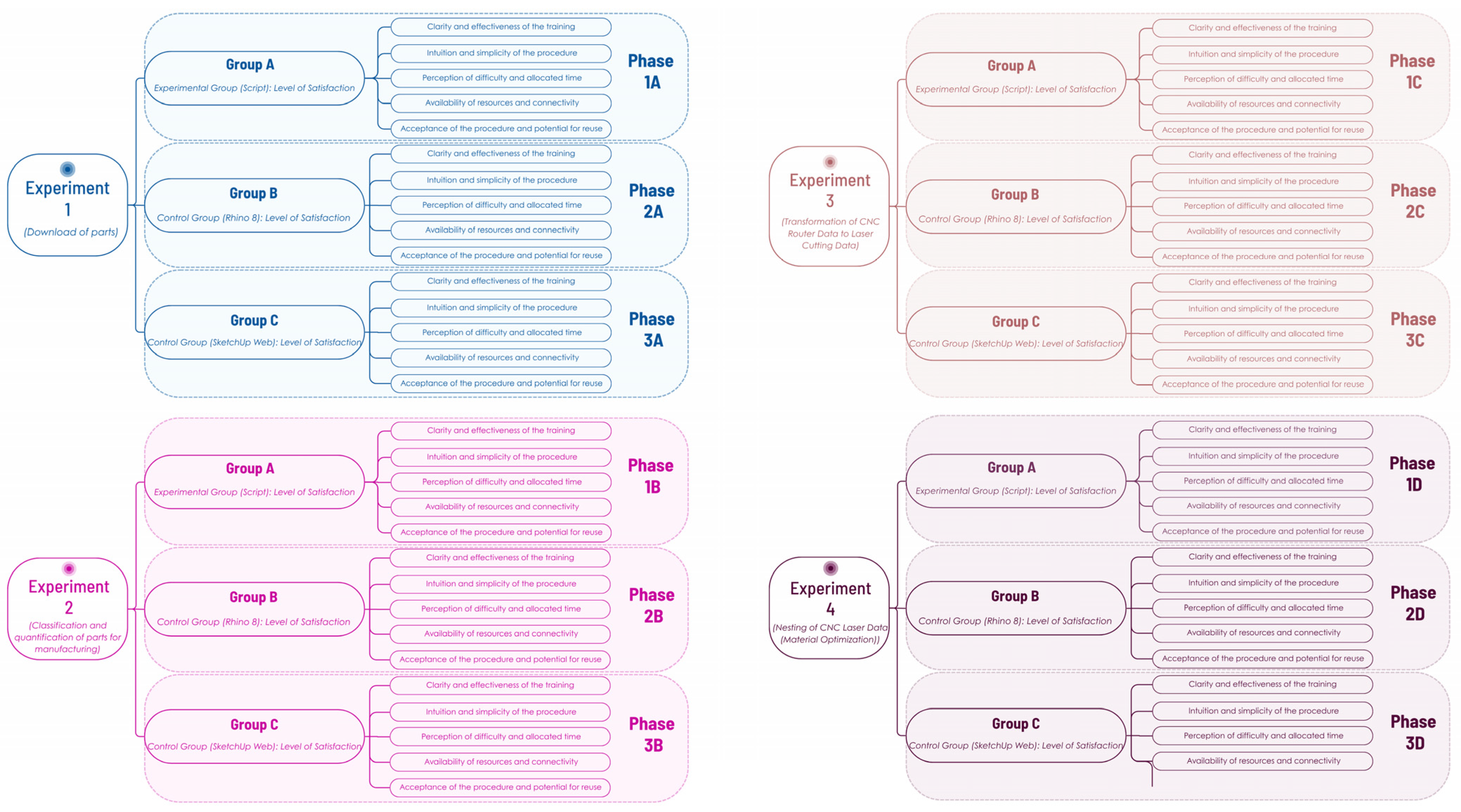 - Hypothesis of Experiment 4: The use of digital tools reduces the execution time of the transformation and minimizes the percentage of errors in the transformation of data from CNC Laser to CNC Router for the manufacture of prototypes Wikihouse.