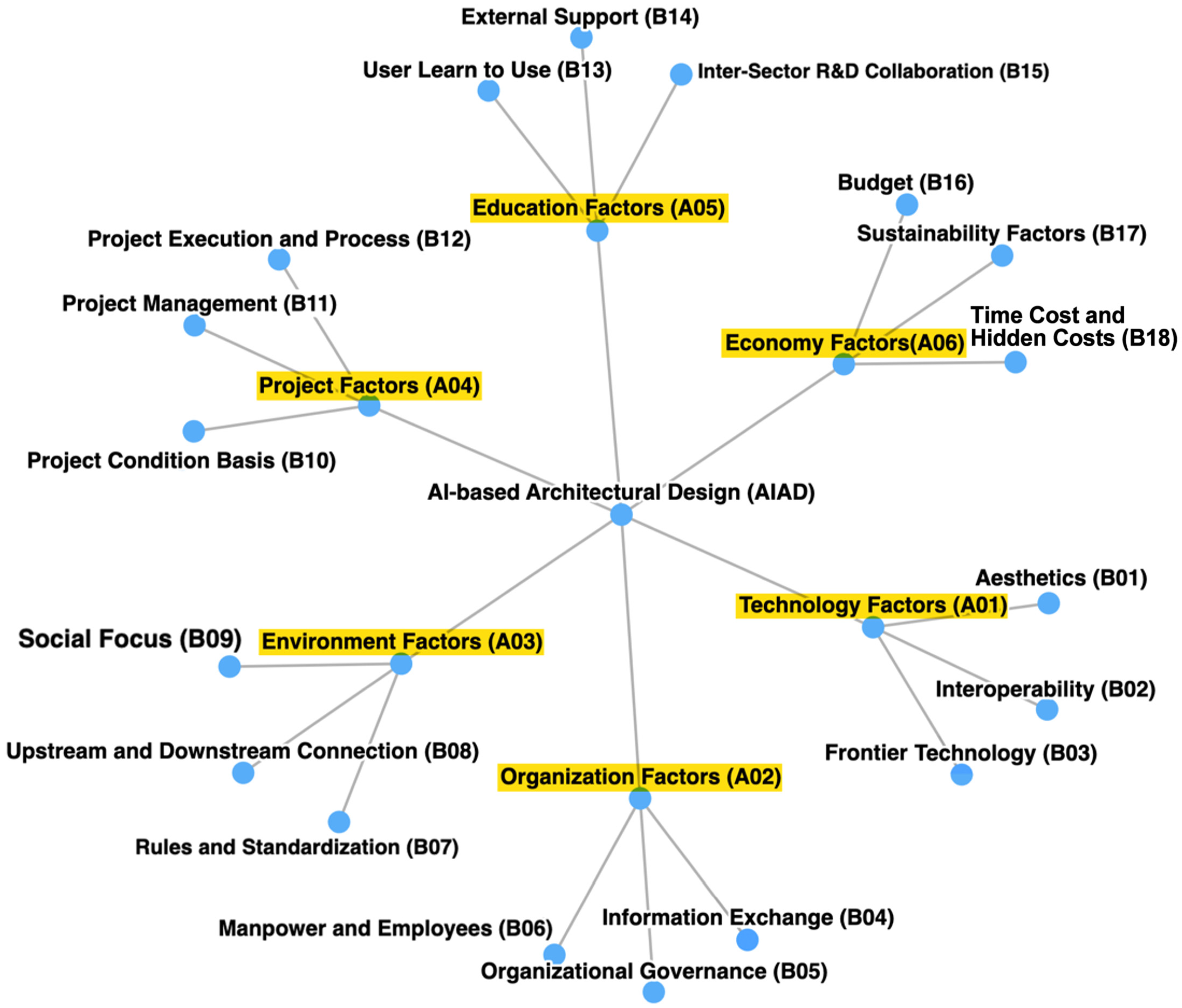 It is also used to identify influencing factors that influence the implementation of AI-based architectural design. In this section, with a meta-analytic quantitative literature review as the basis, 6 primary influencing factor groups and 18 secondary influence factor groups are divided, as shown in