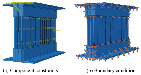 Neglecting welding may introduce discrepancies between the numerical model and the physical prototype, but such differences remain within acceptable limits [49]. Explicitly modeling welding would significantly increase the total number of degrees of freedom in the model and could induce severe mesh distortion near weld regions, leading to convergence difficulties in nonlinear analysis. Using “Tie” constraints instead of welding effectively avoids these complexities while mechanically approximating rigid connections—a common and justified practice in engineering simulation [50,51].