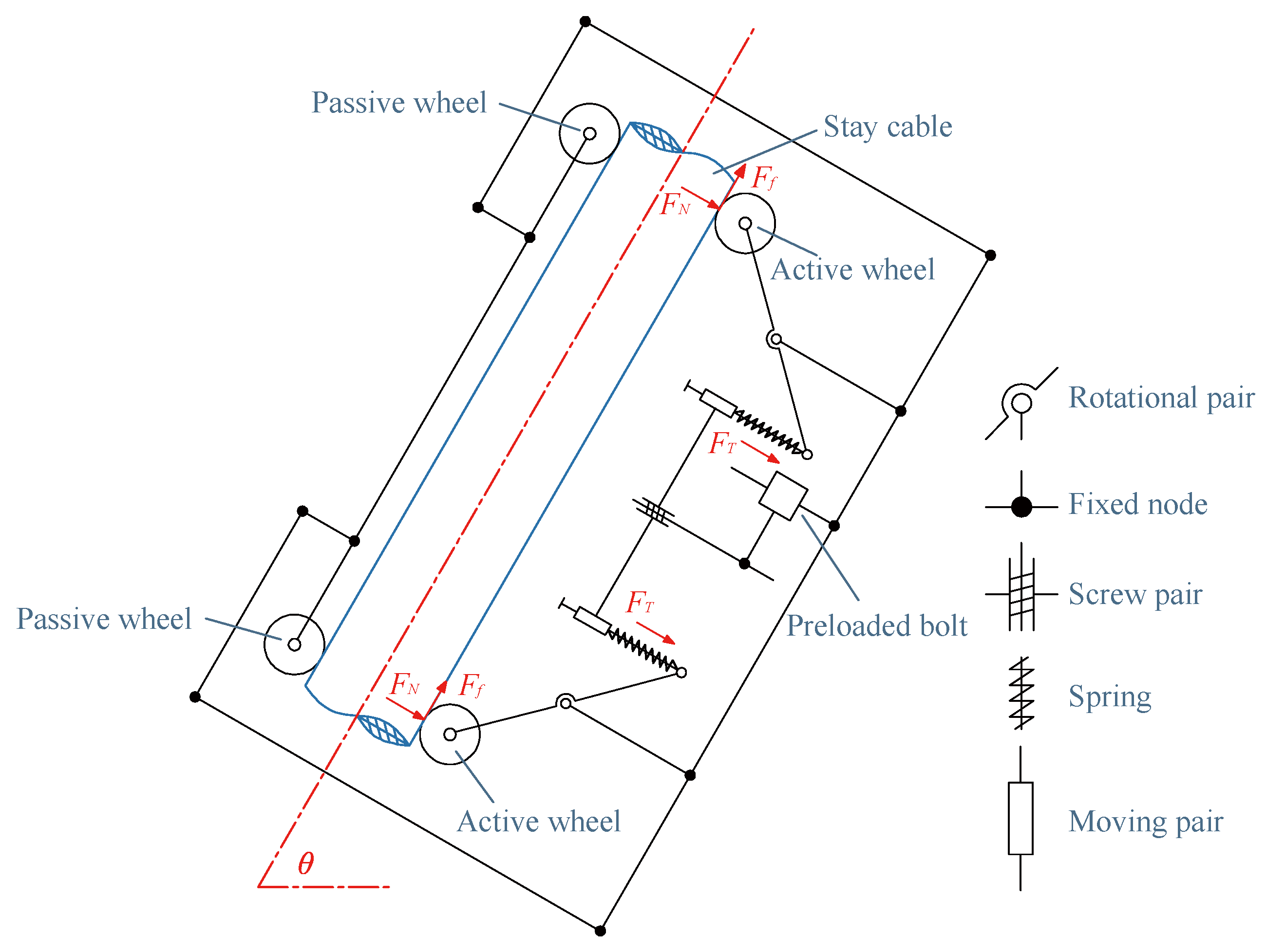 denotes the friction between the active wheel and the stay cable,