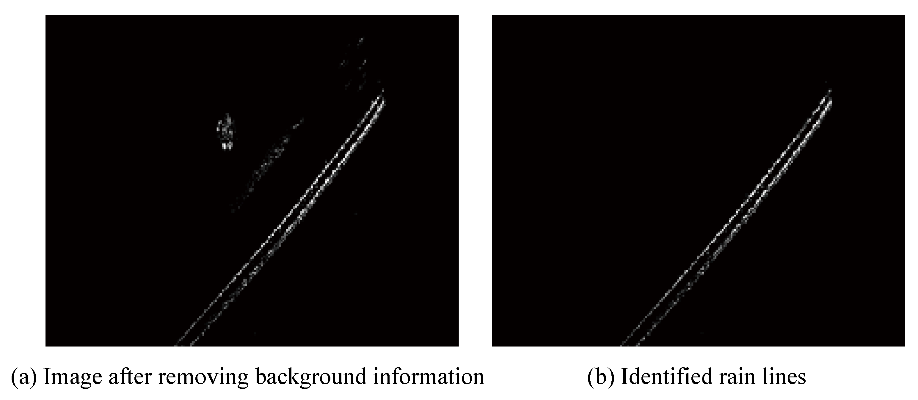 The captured cable surface images were processed through the proposed defect recognition framework. Combining histogram equalization, Gaussian filtering and Sobel edge detection, the Hough Line Detection Algorithm is able to accurately identify the sheath edges, thereby eliminating background information. Meanwhile, the NCC based template matching demonstrates superior performance in identifying rain lines. Finally, automatic calculation of defect geometry is achieved through connected domains and contour extraction. Both laboratory tests and field tests have verified the performance of the developed intelligent robotic system. Future work will focus on integrating deep learning methods into the inspection framework. With the accumulation of sufficient datasets, these methods are expected to enable more accurate identification and classification of cable surface defects.