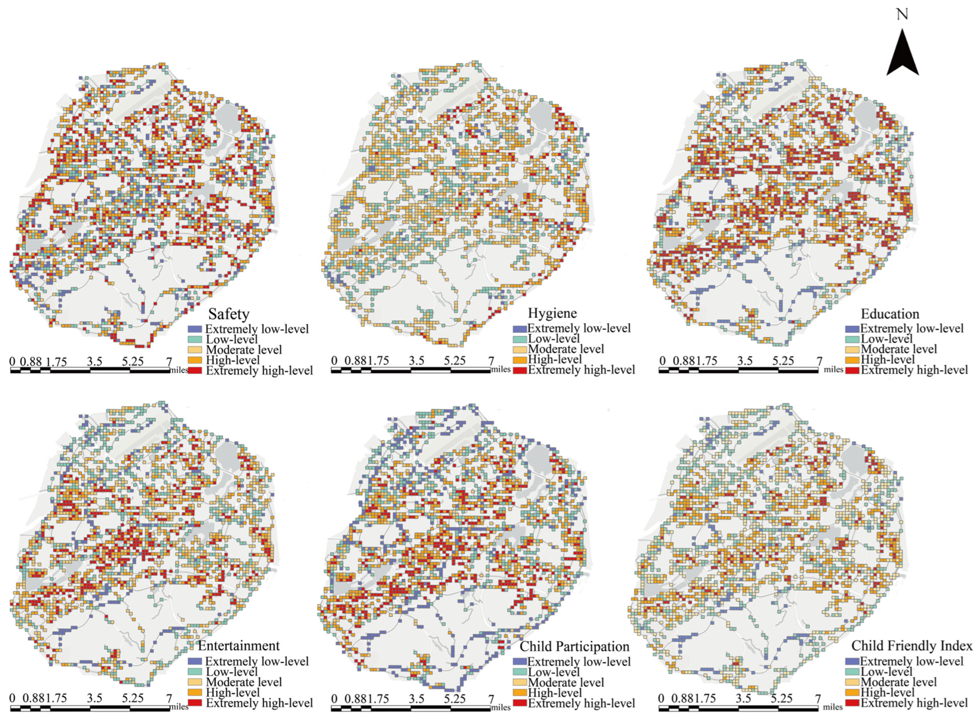 4.1. Overall Child-Friendliness Level of Urban Streets