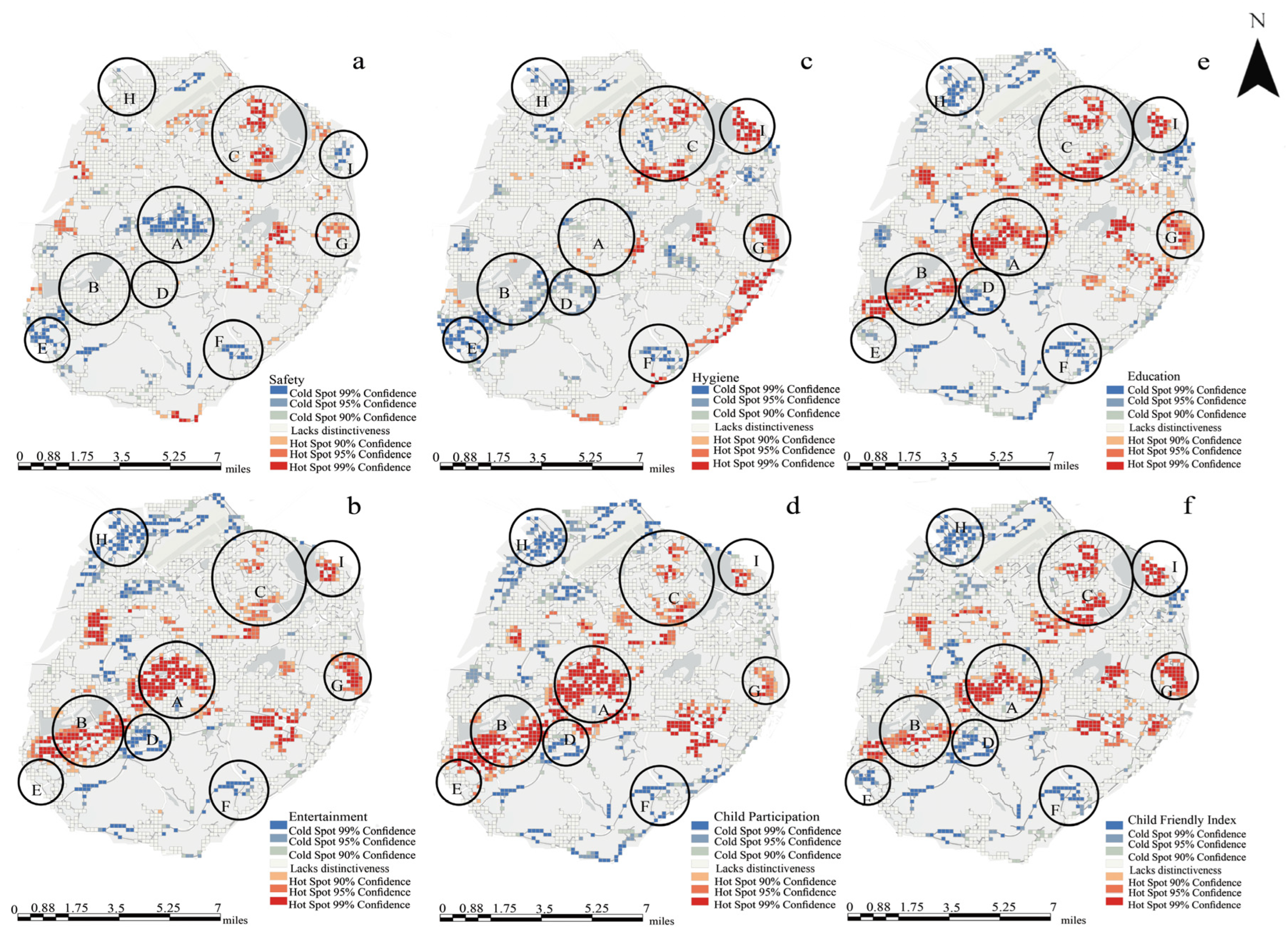 3.2. Cluster Analysis of Child-Friendly Spaces in Urban Districts