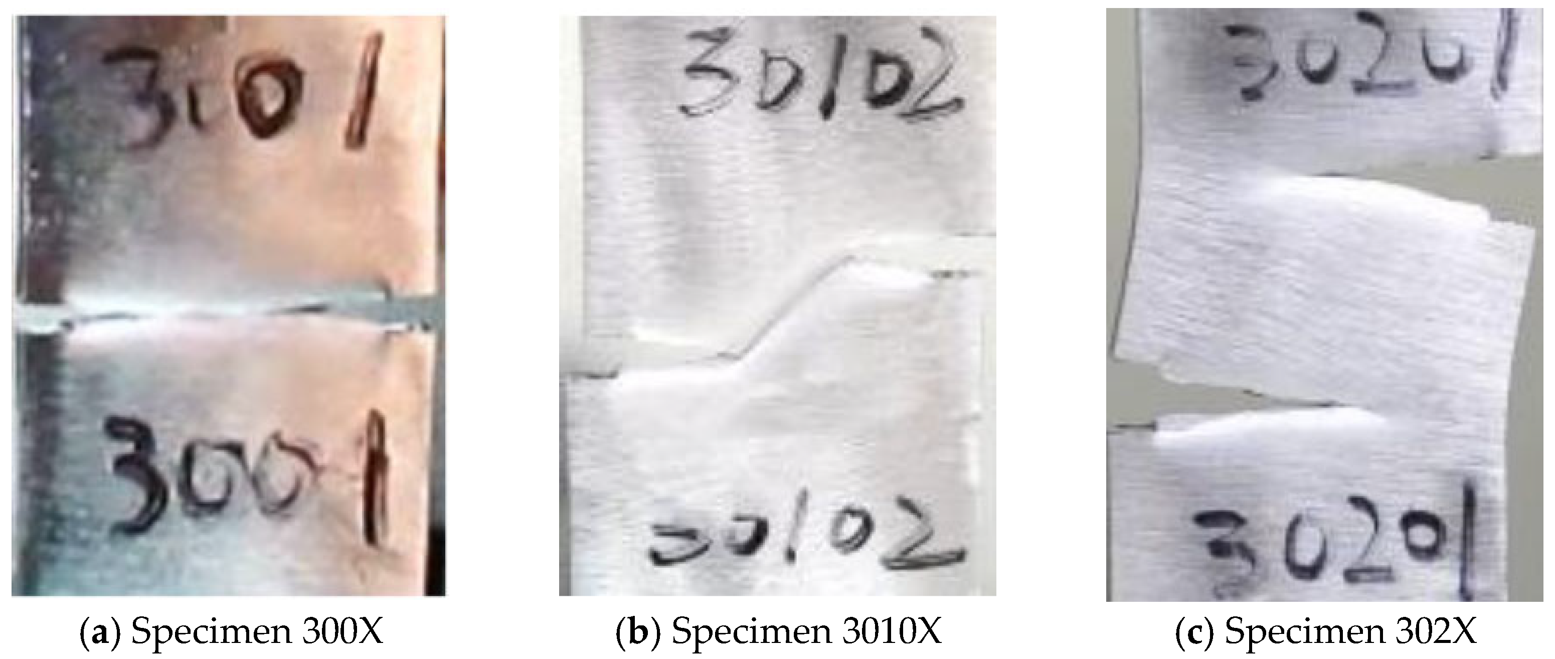 - Zeng, S. Bilateral Crack Growth Behavior of Q345 Steel Under Uniaxial Thensile Load. Master’s Thesis, Guangxi University, Nanning, China, 2014. [Google Scholar]