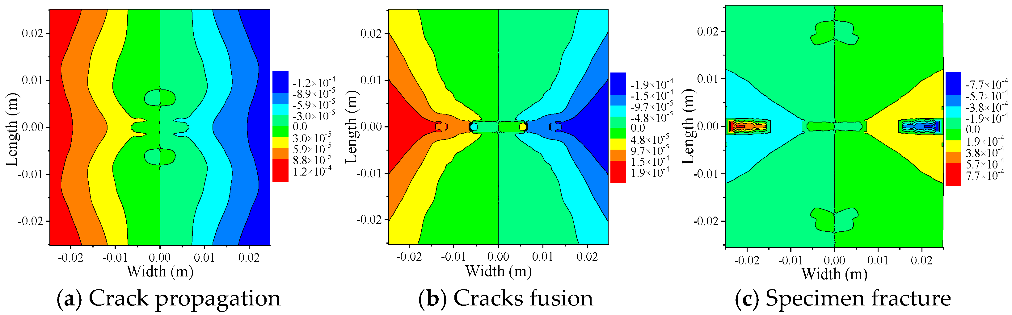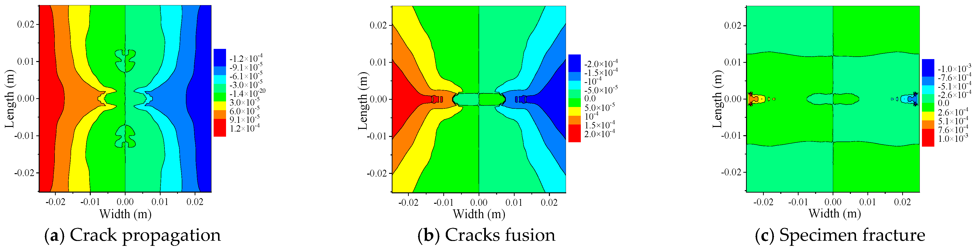 3.2.1. Simulation Analysis of Double-Sided Crack Specimens