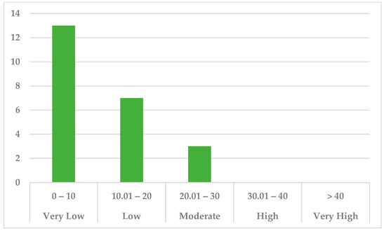 The scoring system assumes a minimum possible score of 24, representing the baseline scenario in which none of the indicators is implemented (i.e., each rated at 1). The maximum possible score is 120, which corresponds to full implementation of all 24 indicators at the highest rating (5 per indicator).