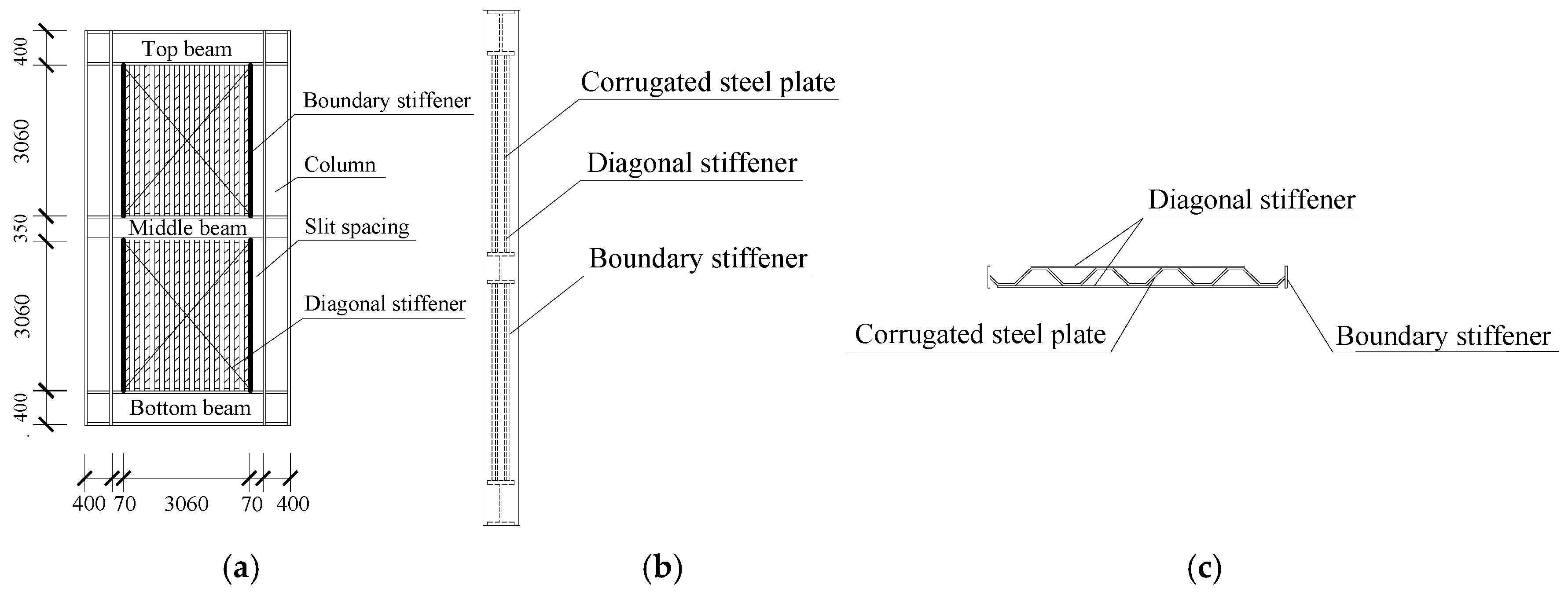 - Yang, S.; Jin, S.; Wang, Q. Modular corrugated steel plate shear wall: The relationship of matching with boundary column in terms of stiffness and strength. J. Constr. Steel Res. 2025, 227, 109341. [Google Scholar] [CrossRef]