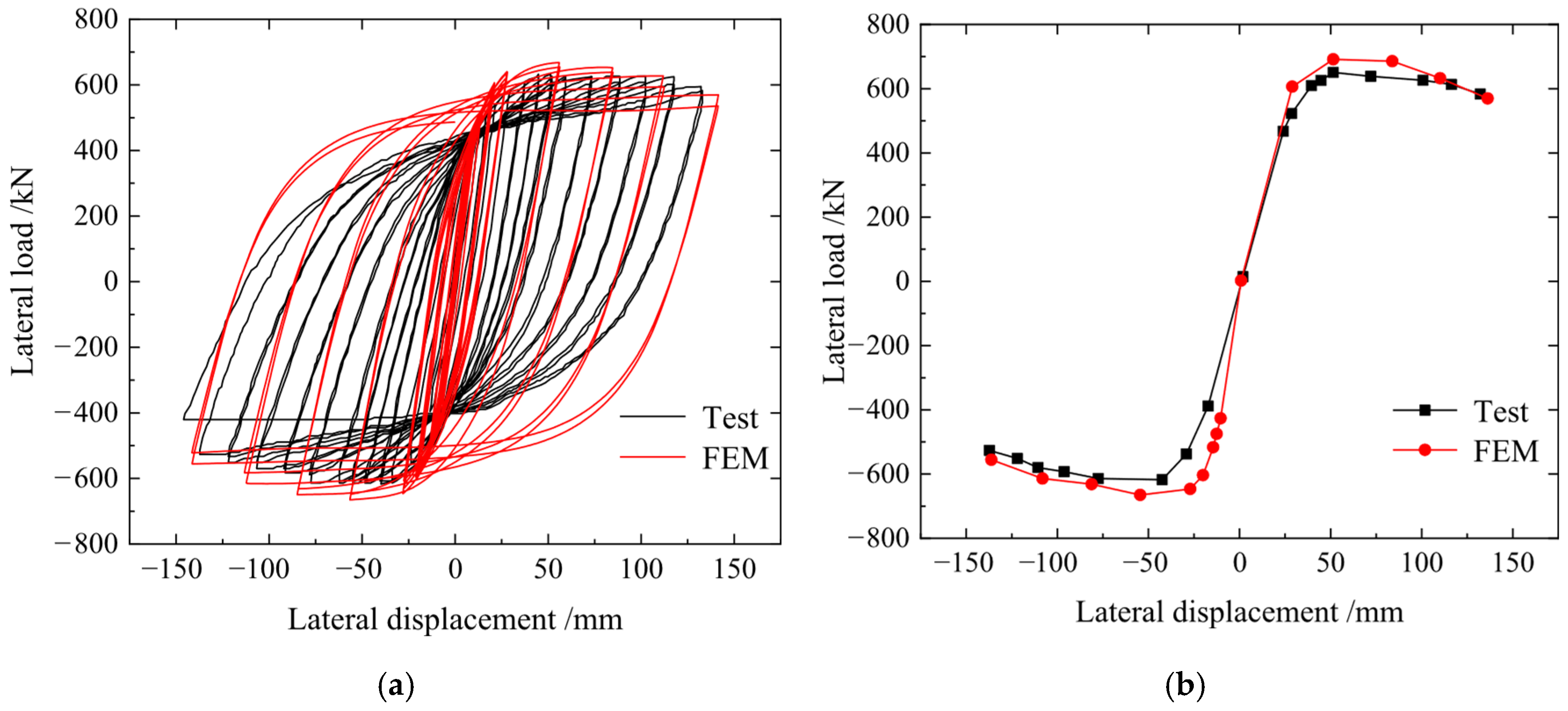 - A FEM model of a single-span double-story PCCSW was established and was validated by comparing it to test results from a single-span double-story CSPW specimen. The findings demonstrate that the maximum error is less than 10% and that the initial stiffness and ultimate shear resistance as determined by FEM are essentially in agreement with the test results.