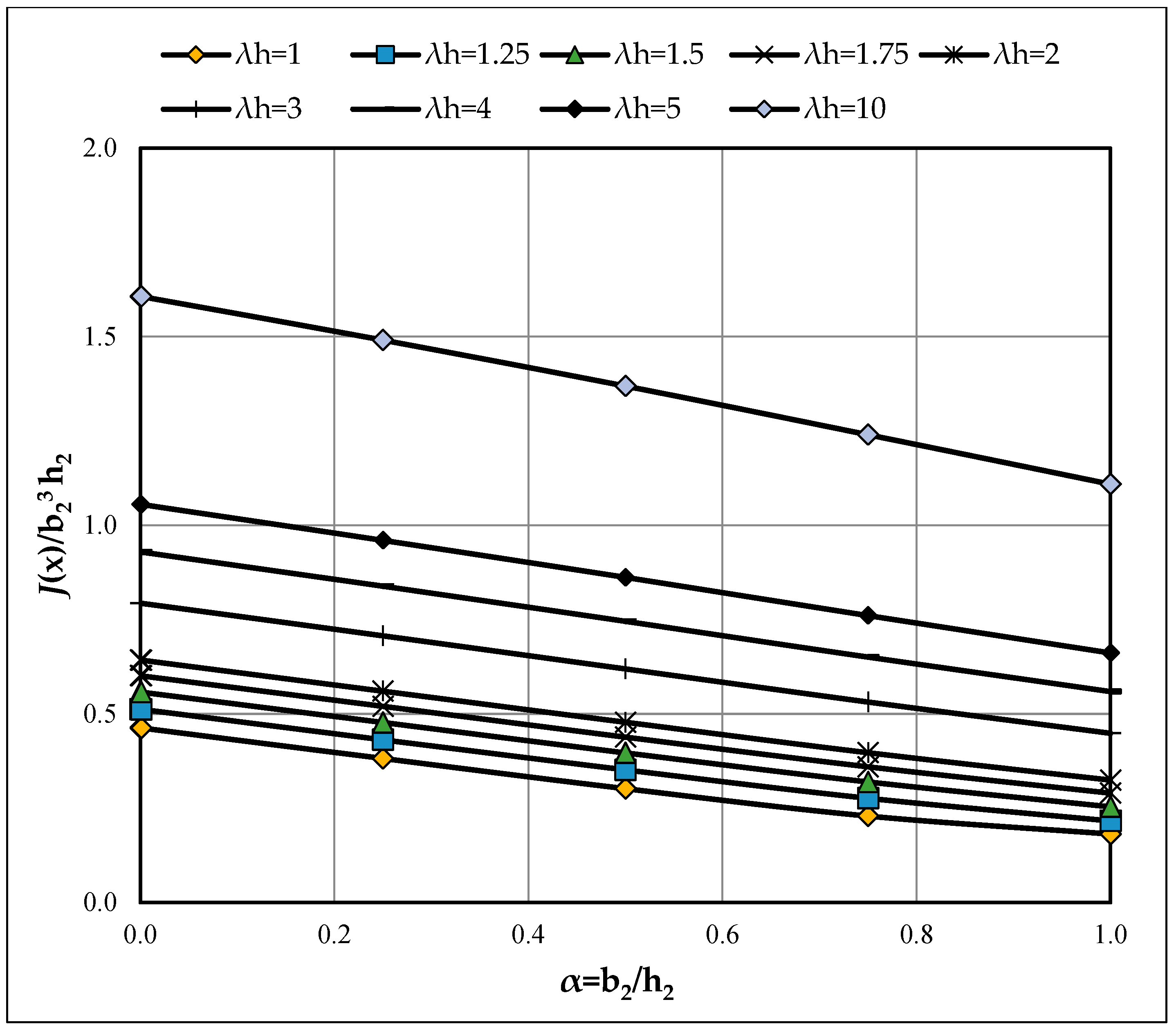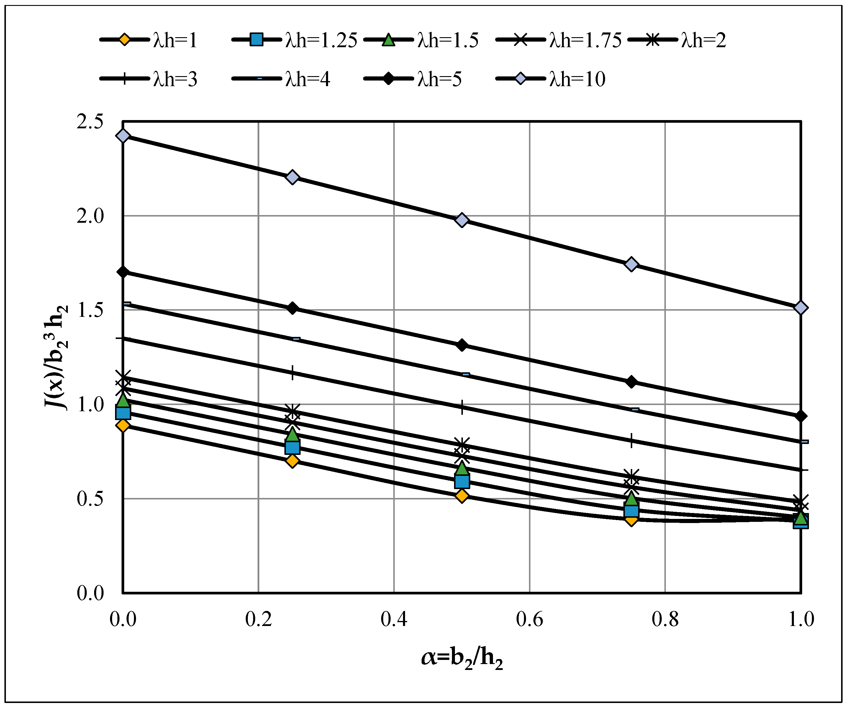 λh = 10); this reflects the competing influences of depth growth and width growth on the Saint-Venant torsion function. The design implication is as follows: since