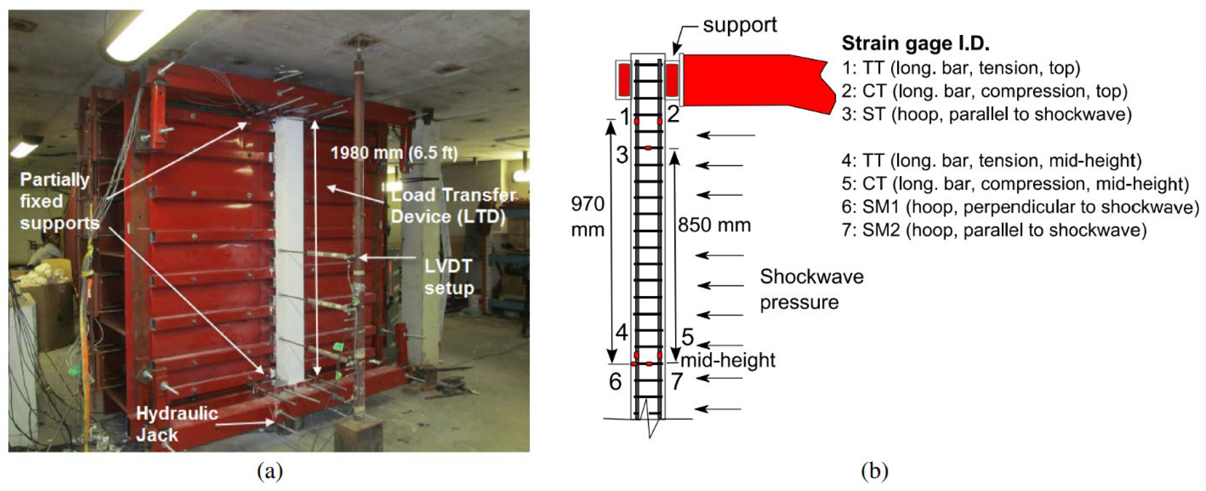 - Confining/seismic reinforcement at the top, bottom, and mid-height regions reduces transverse displacement and cracking under near-field blasts.