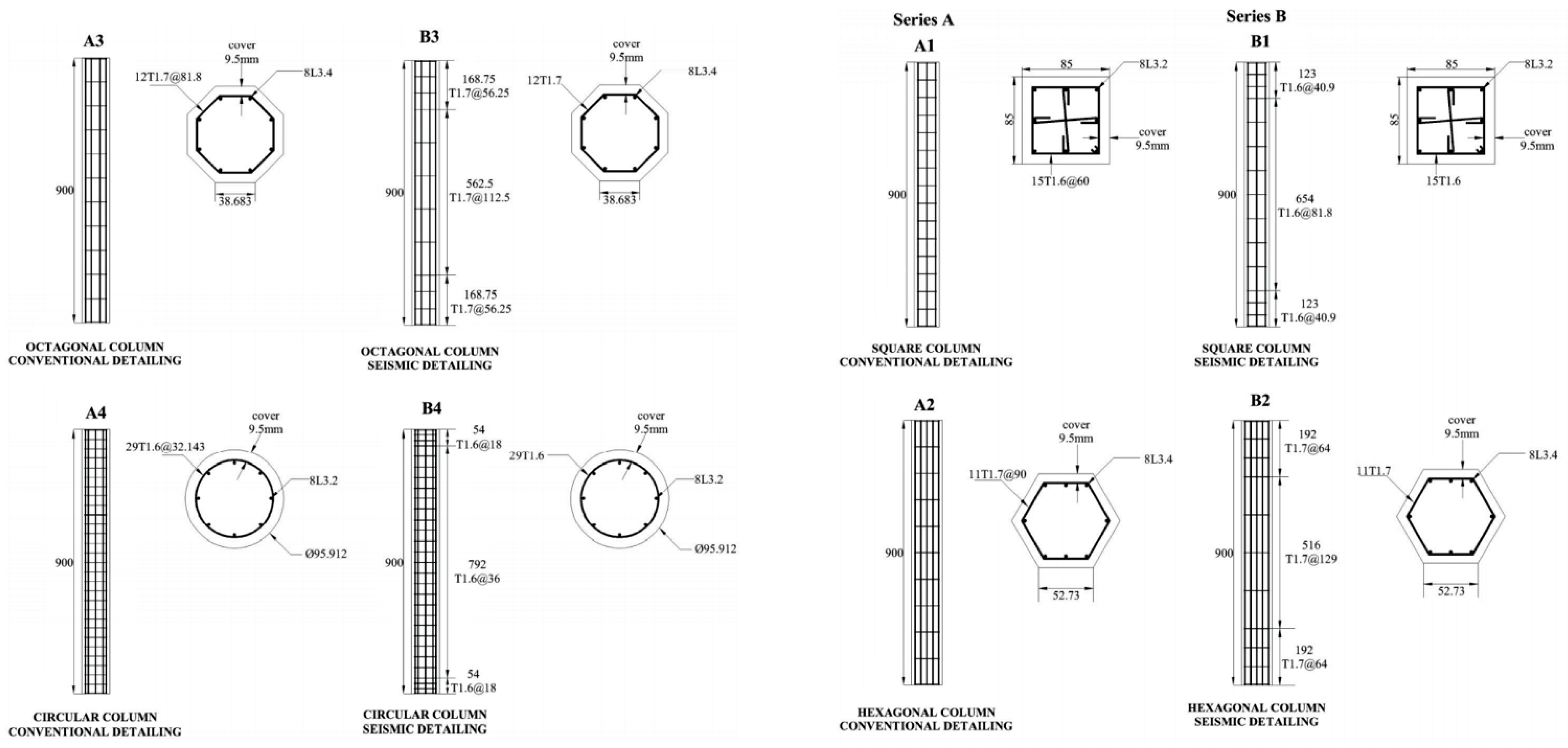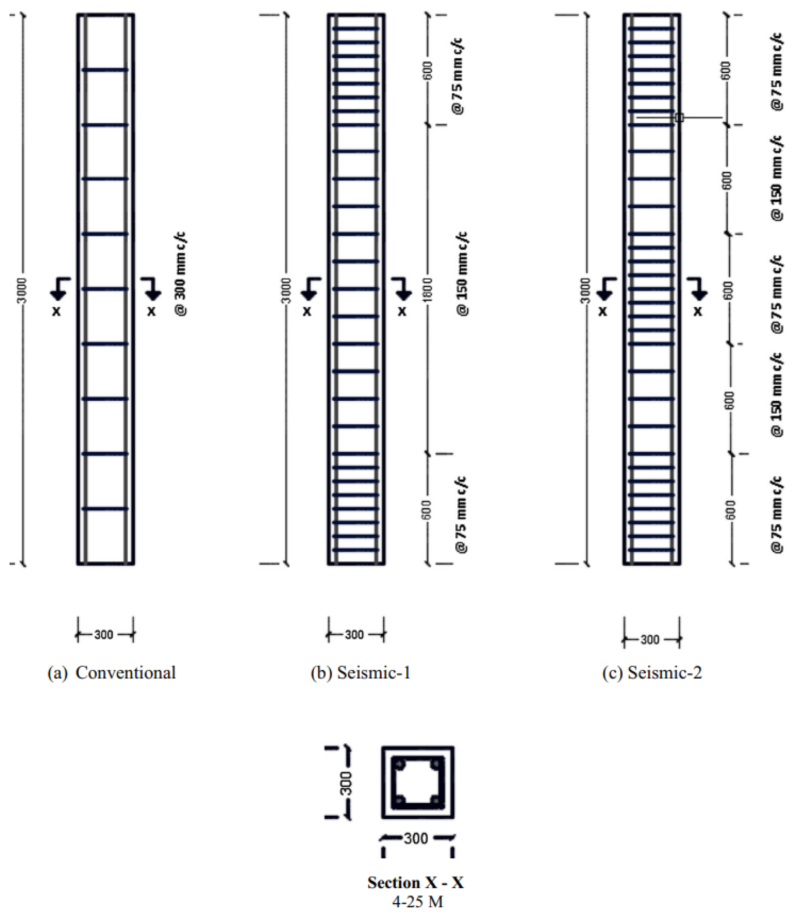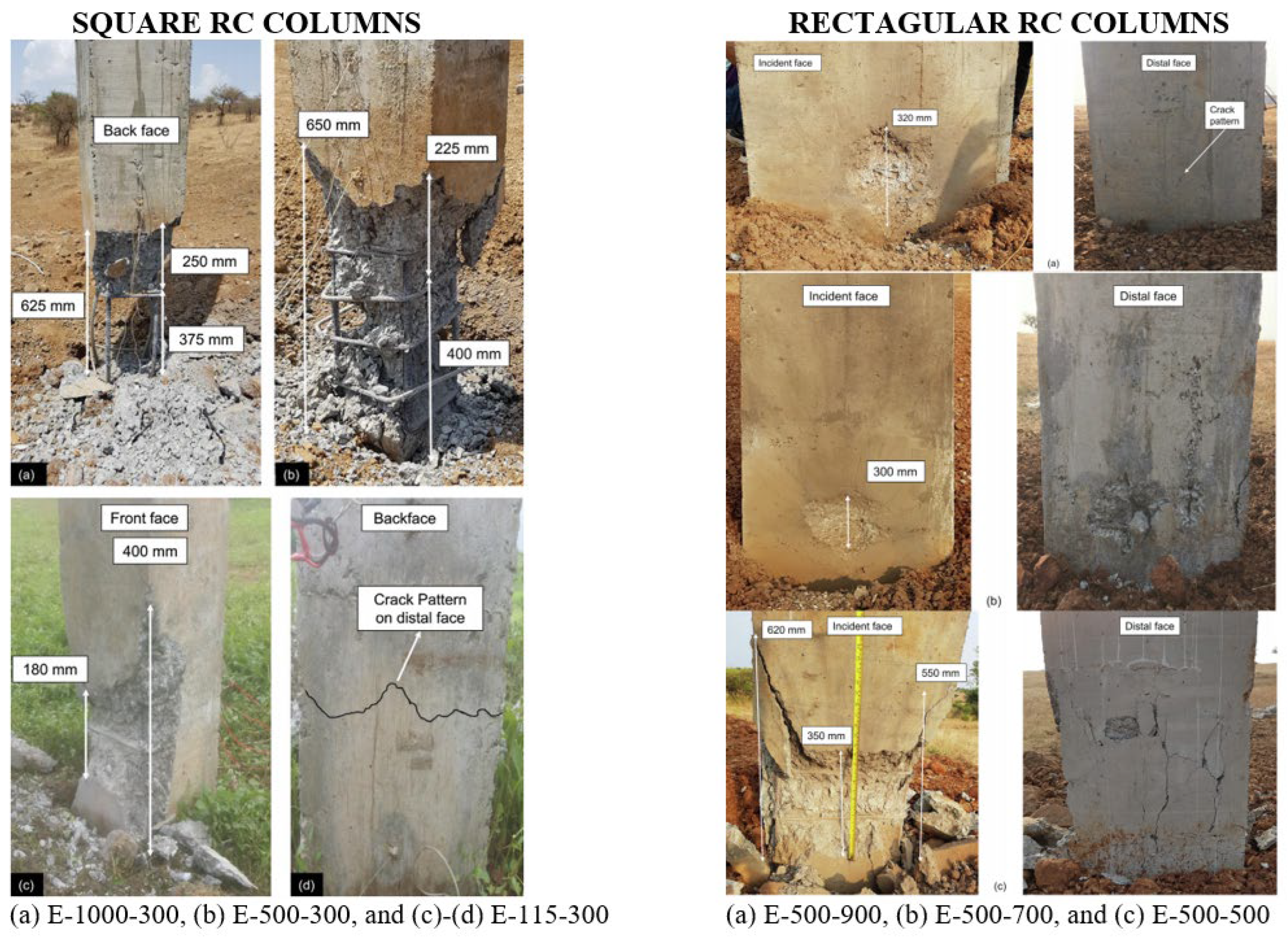| 19 | Kyei & Braimah [2] | 2017 | Experimental | Axially loaded, Concrete structure | 3000 | Square, 300 × 300 | 10 | 40 | 30 | ANFO | Close-in explosion | Seismic/confining reinforcement over top, bottom, mid-height regions |