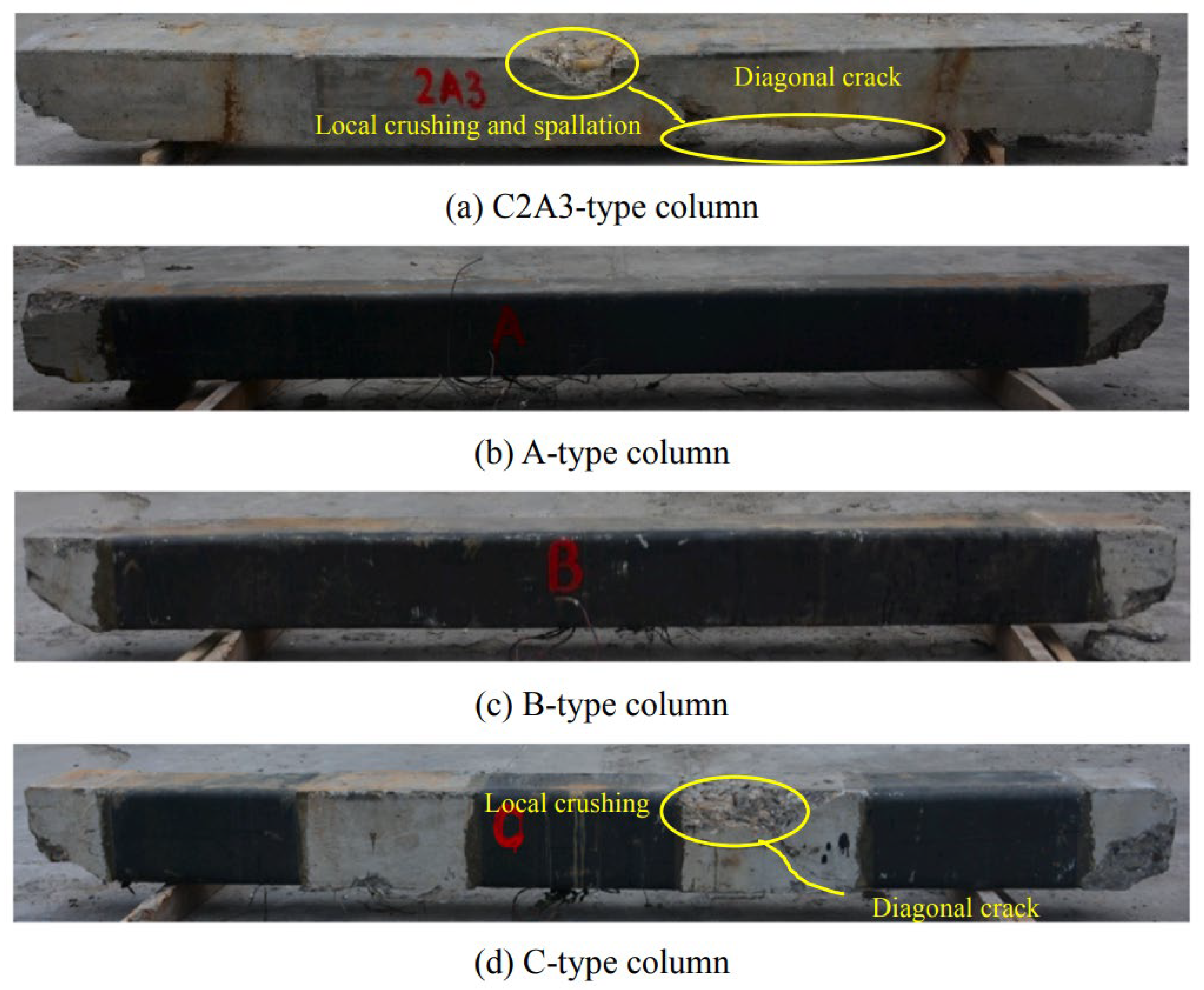 - Segmental columns show reduced spalling and displacement. Energy absorption between segments mitigates damage, and additional shear keys further improve resistance.