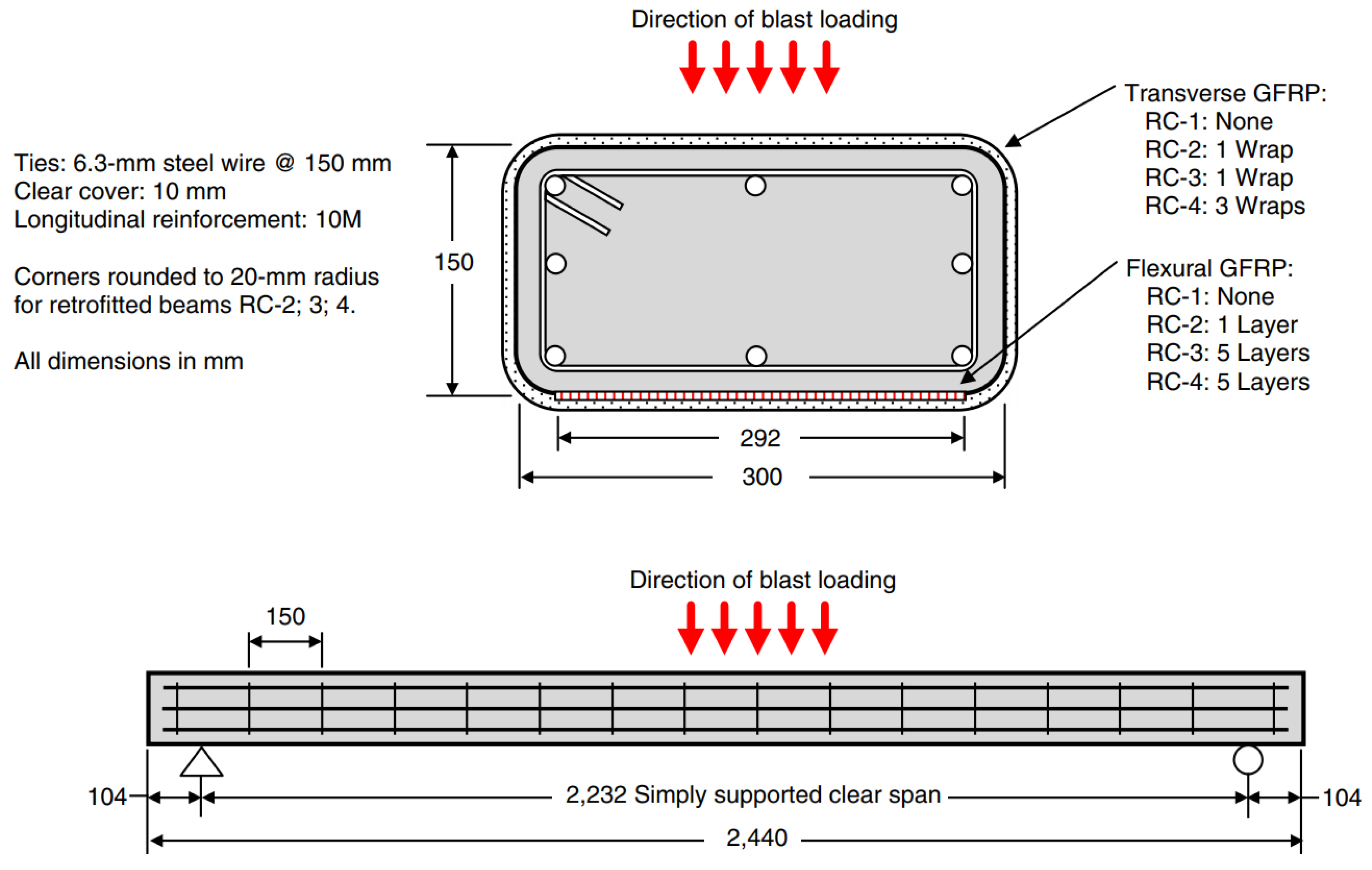 - Glass-FRP composite wrapping on all faces enhances blast performance.