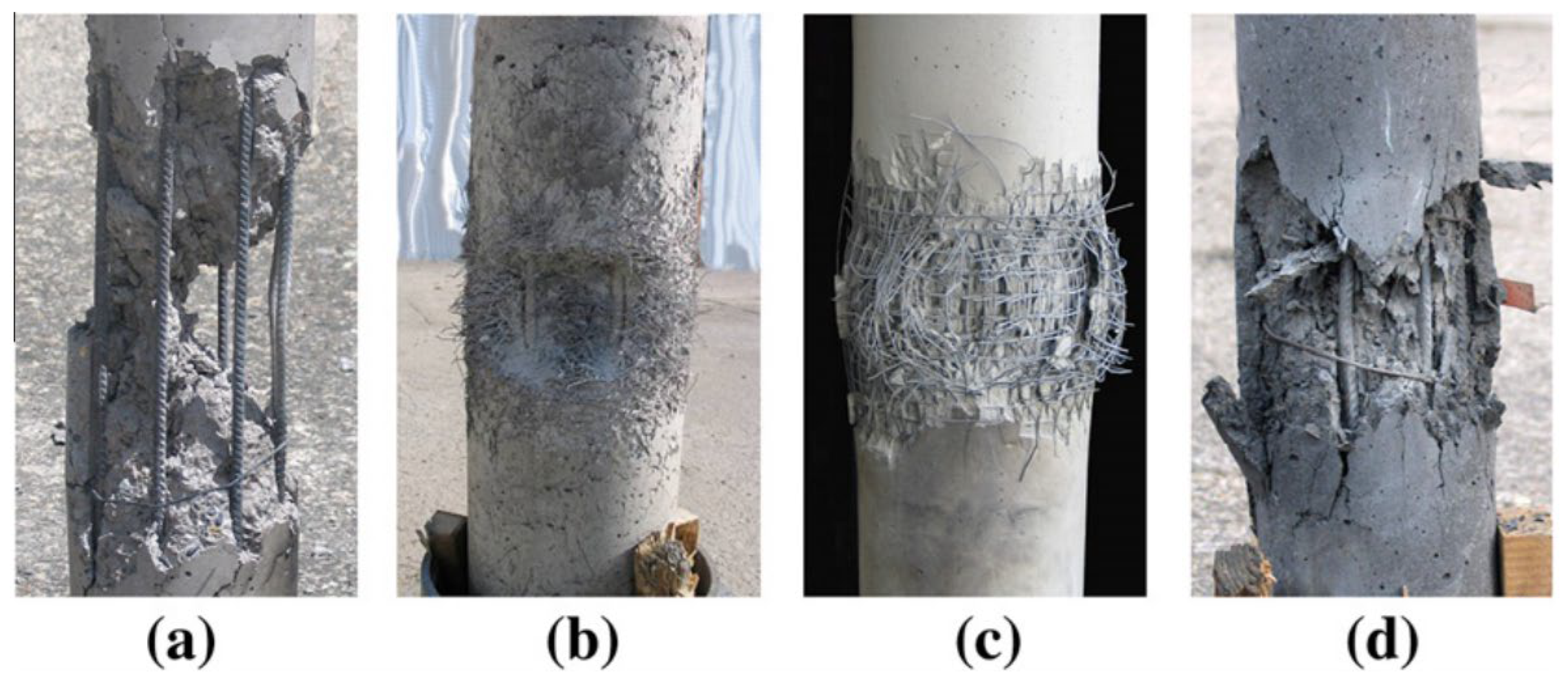 - Steel-FRP wrapping of lower column halves enhances residual load by 10–15%, while two layers of transverse CFRP strips improve cracking resistance and residual capacity under close-in explosions.