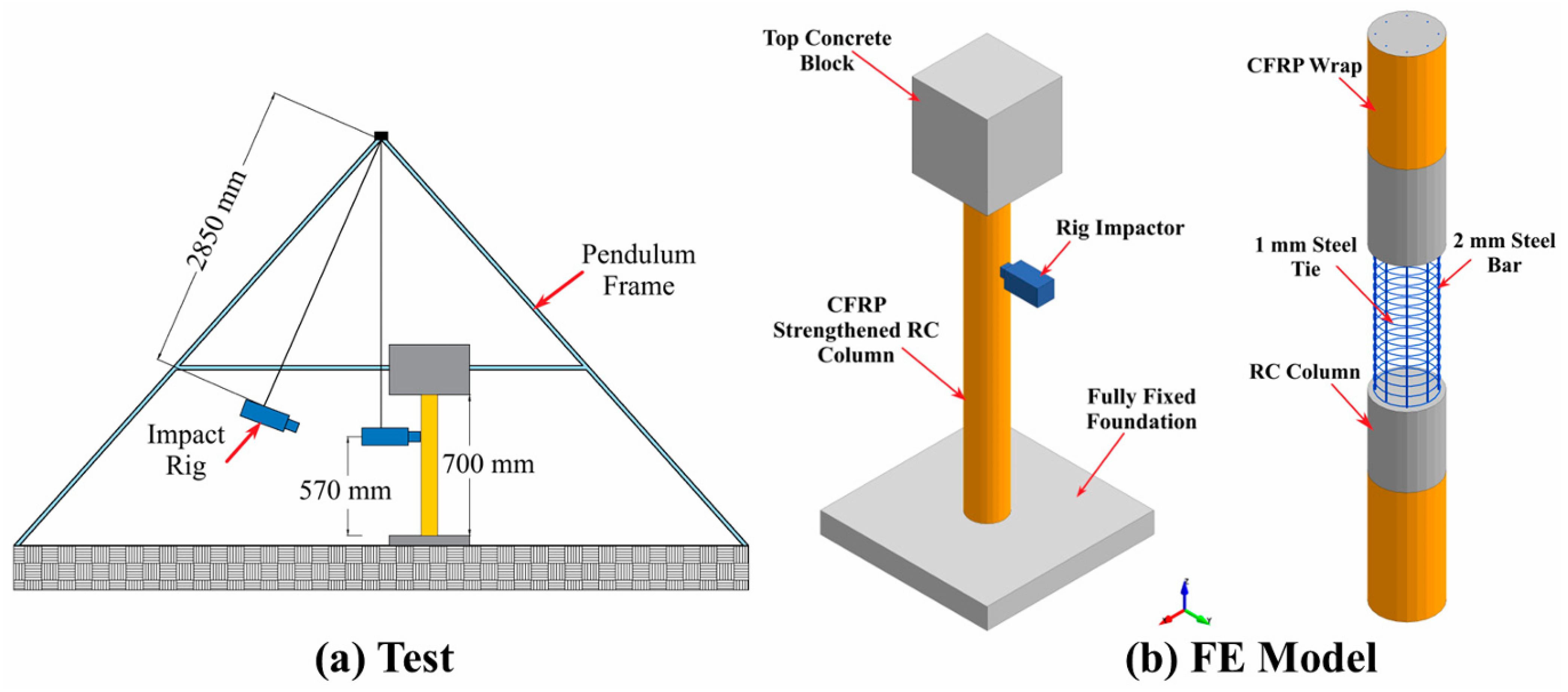 | 26 | Dua et al. [69] | 2020 | Yes | Close | LS-DYNA | Mat_Concrete_Damage_Rel3 | Damage/crack patterns; reflected pressure; displacement; damage index | 1. Damage index may not reflect true damage (columns tested without axial load). 2. Comparison of square & rectangular columns under different axial capacities not relevant. 3. Stress variation in reinforcements not presented. |