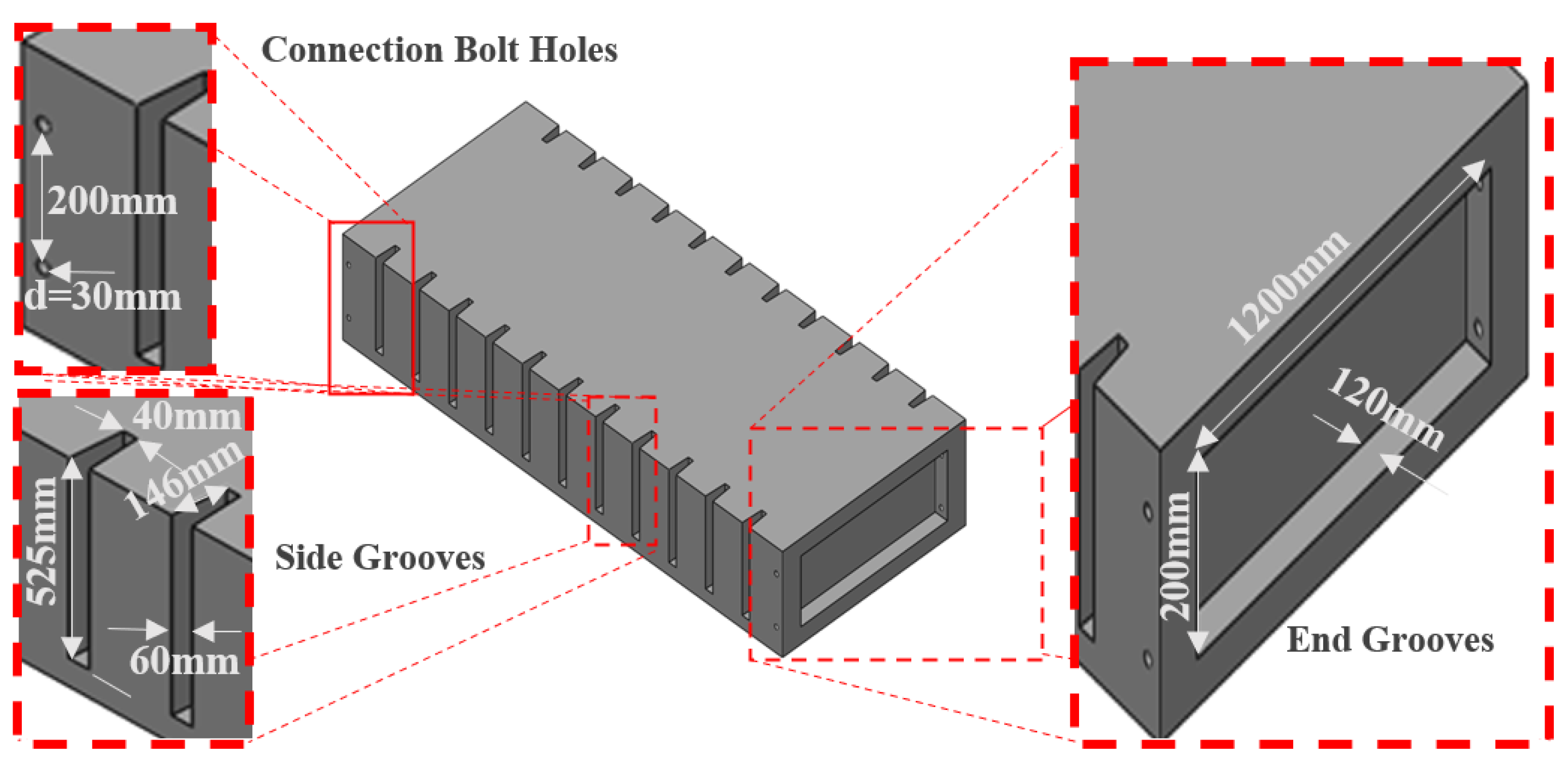 - Zhang, J. Research on Mechanical Performance of New Prefabricated Plate Assembly Joint. Master’s Thesis, Jiangsu University, Zhenjiang, China, April 2023. [Google Scholar]