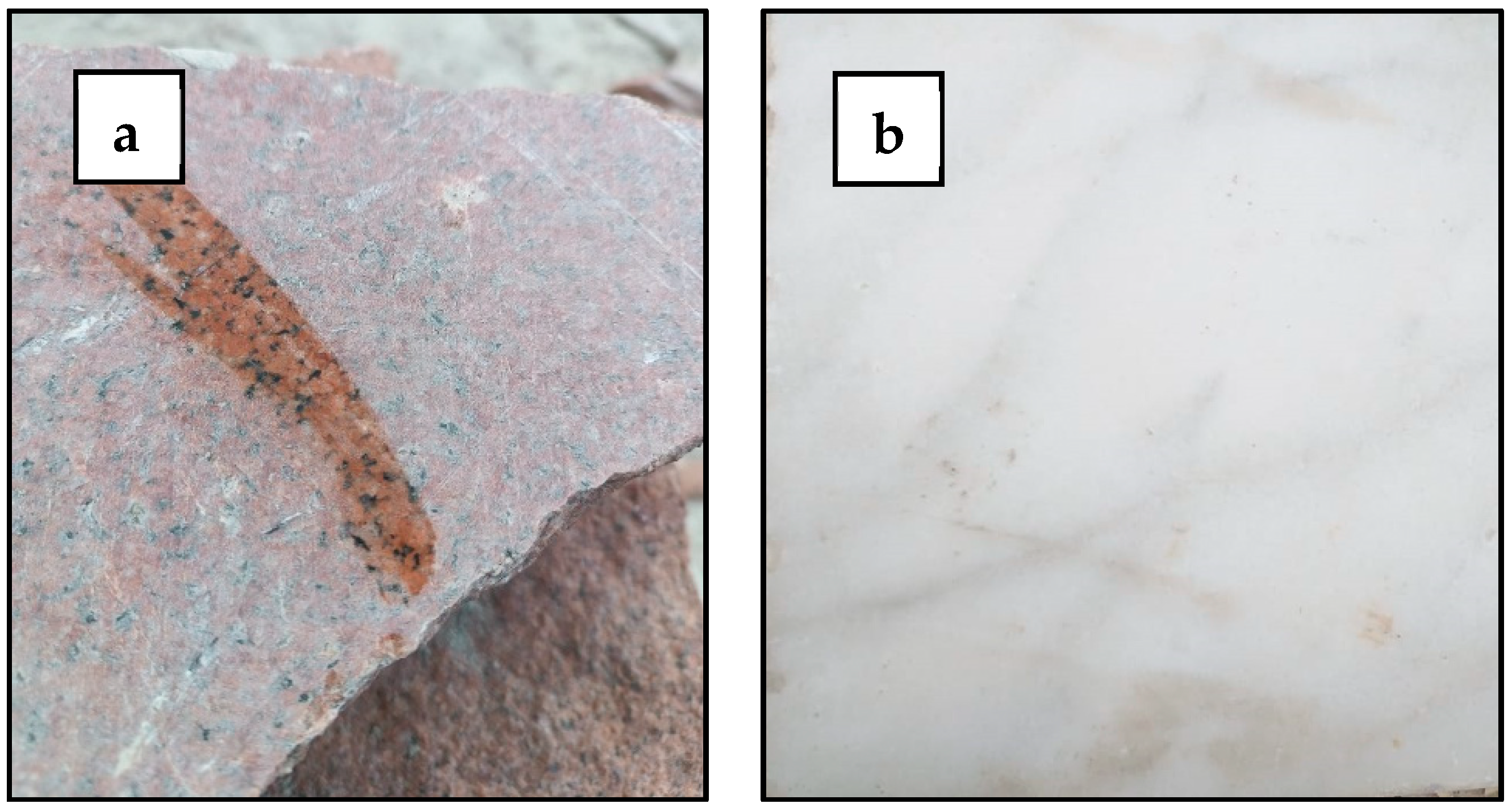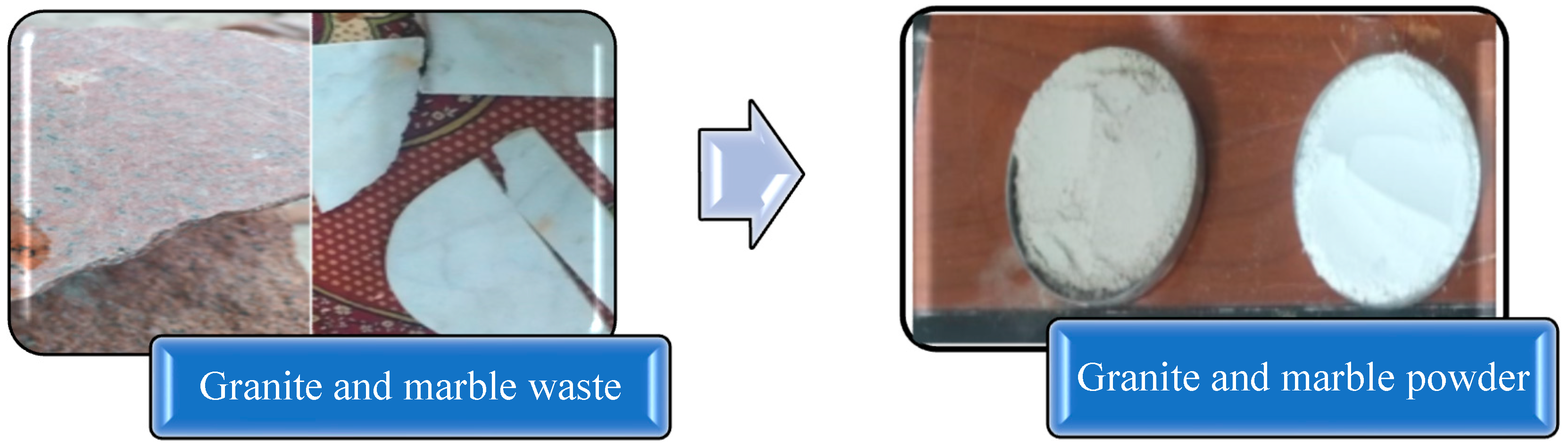 Figure 1 presents a visual representation of the granite and marble waste samples and
