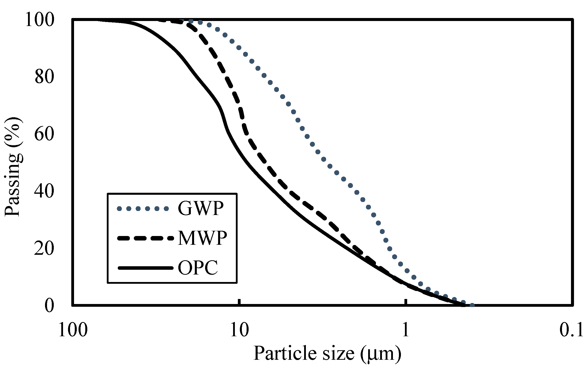 Figure 3. GWP was the finest material. MWP was finer than OPC.