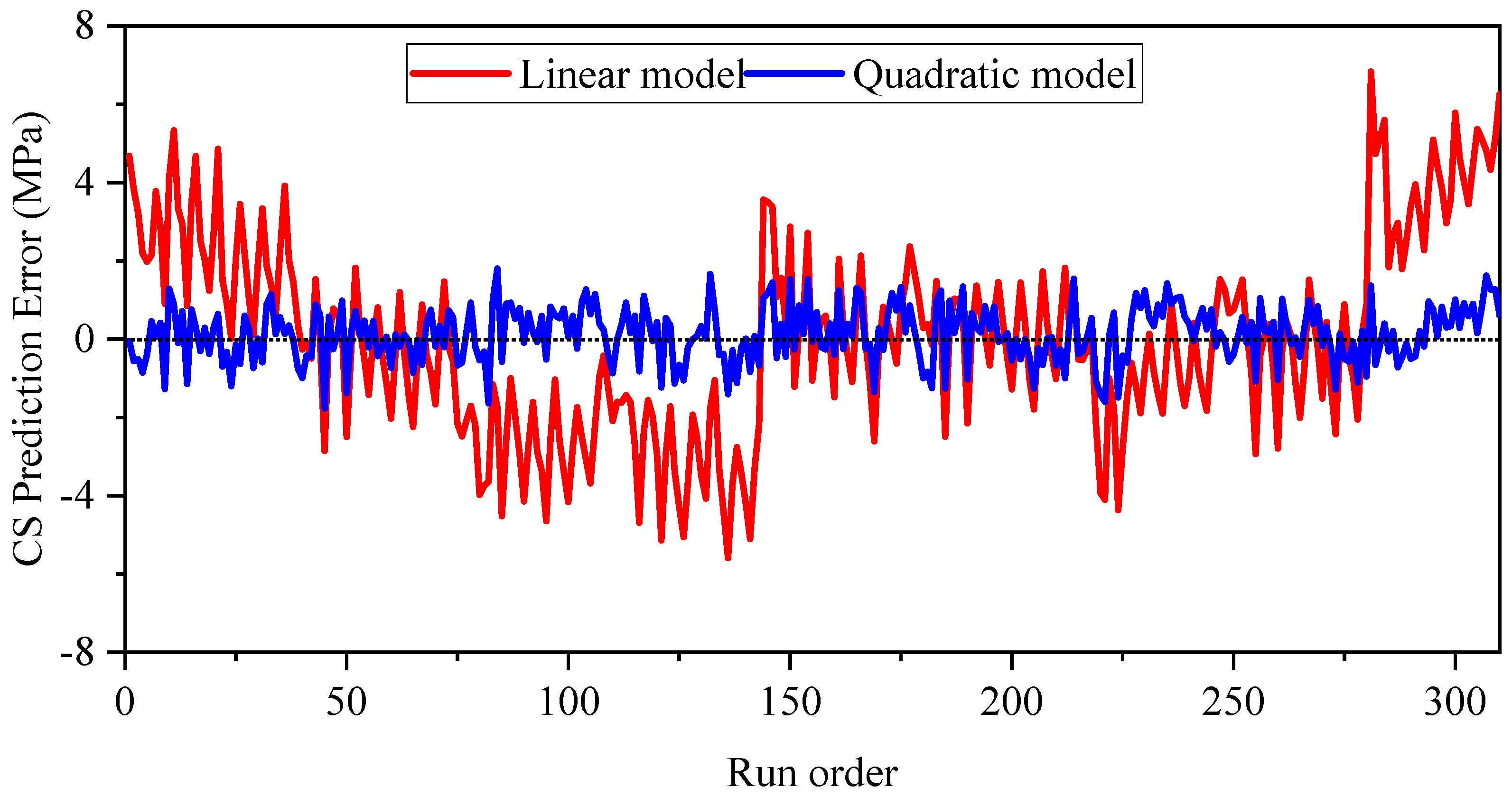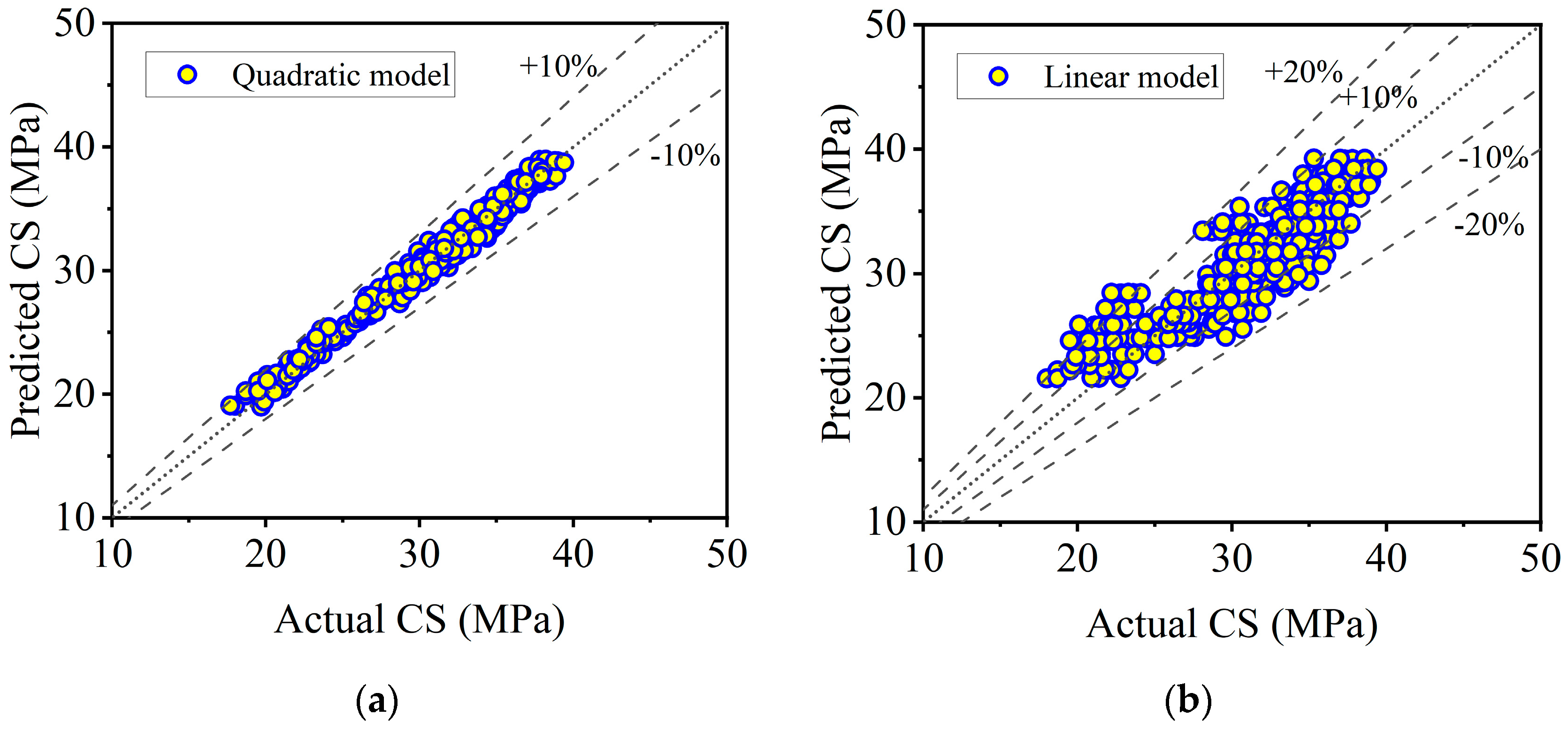 Table 5, a clear hierarchy of model performance emerges, with the Quadratic model demonstrating superior predictive accuracy and reliability for forecasting compressive strength. The Linear model, while providing a foundational understanding with a respectable R