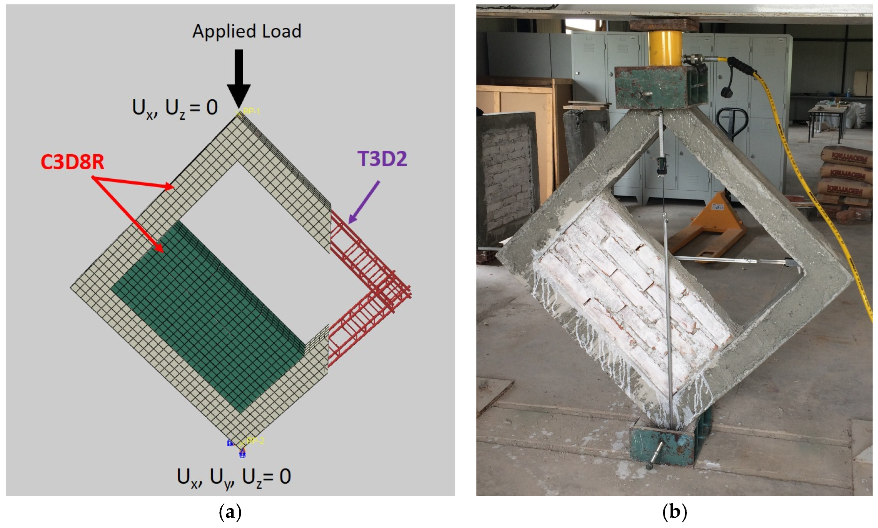 7. Hammoudah, S.M.W.; Chaudhary, M.T.A.; Essawy, A.S. Analytical and parametric study on masonry infilled reinforced concrete frames using finite element method. Adv. Struct. Eng. 2017, 20, 1891–1906. [Google Scholar] [CrossRef]
