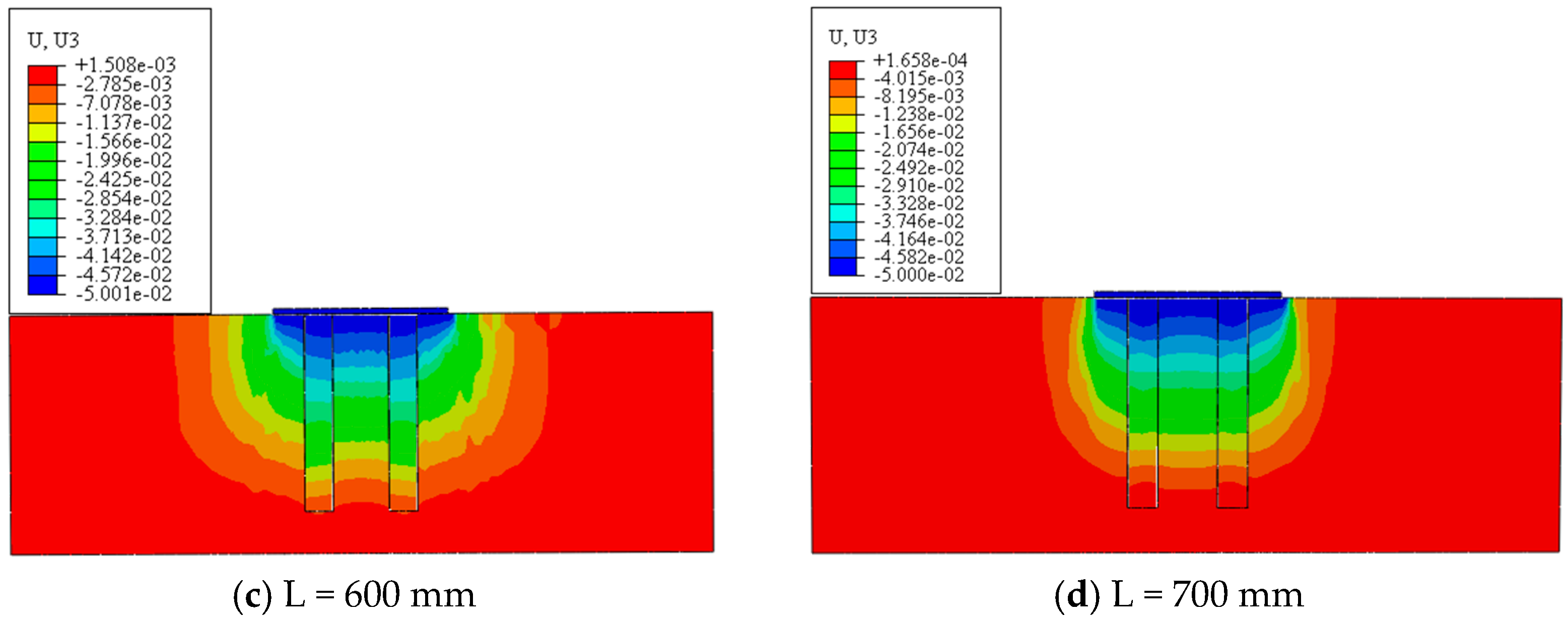 4.1. Influence of Encasement Length on the Bearing Characteristics of Composite Foundations