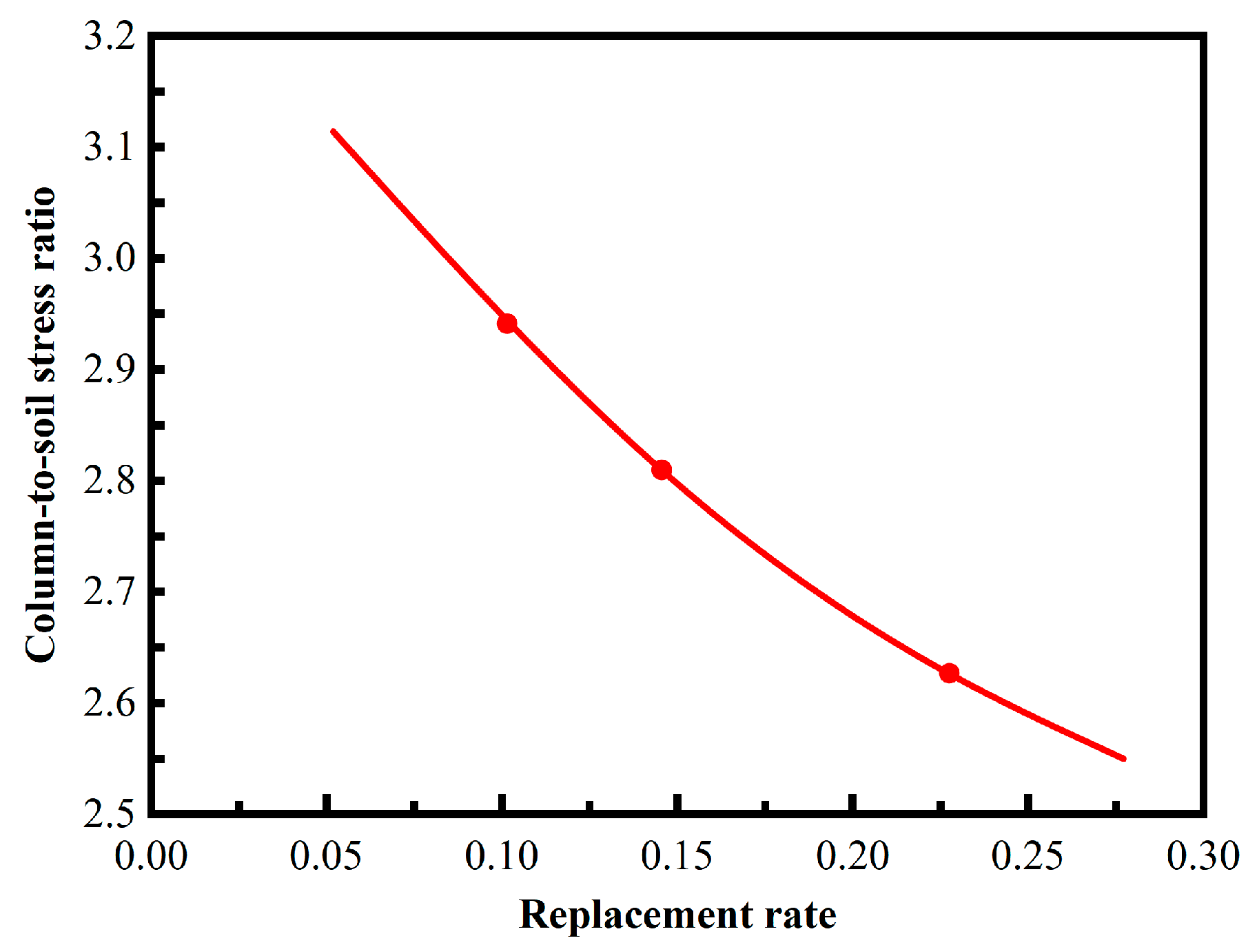 The relationship between the column–soil stress ratio and the replacement ratio.