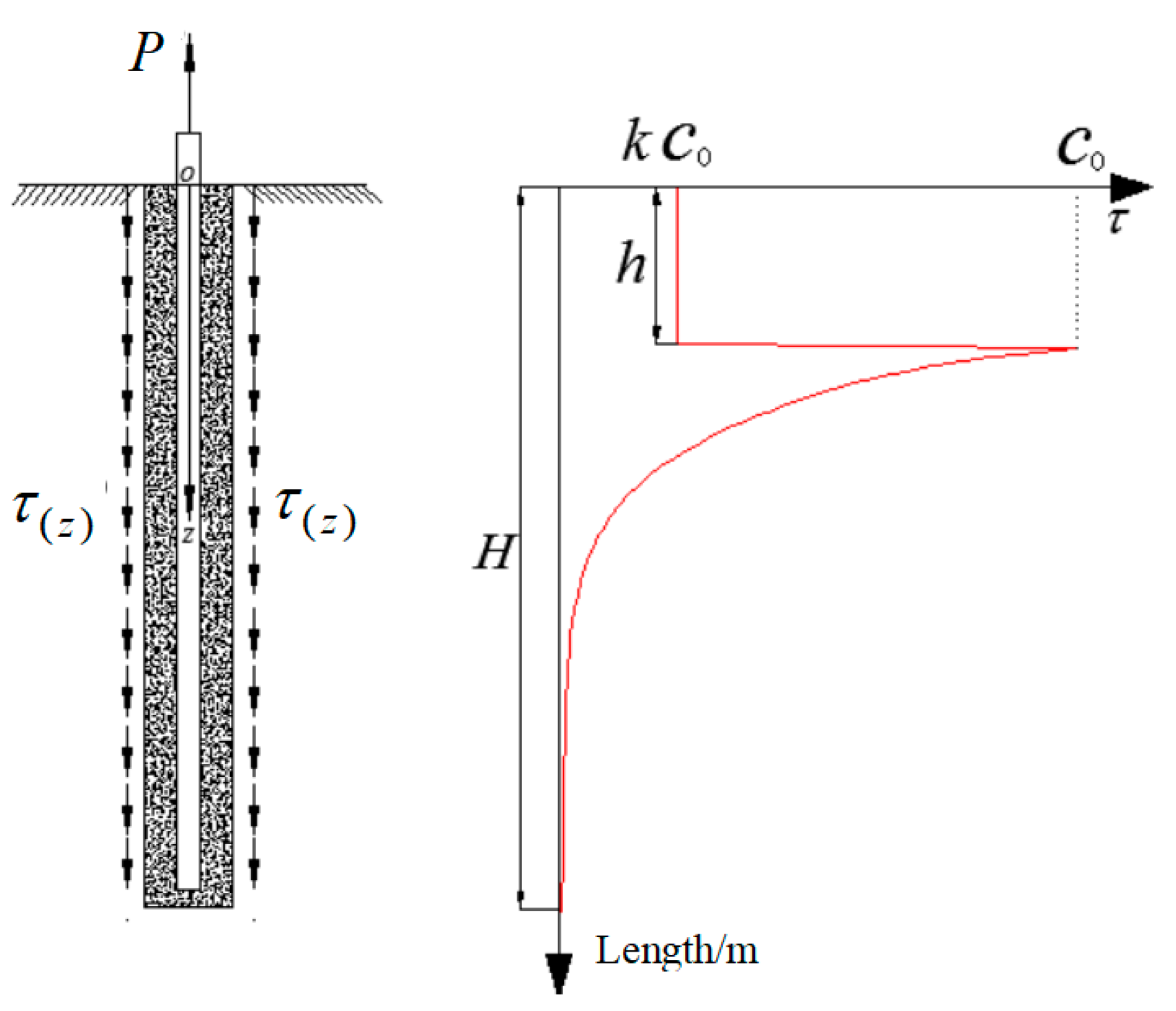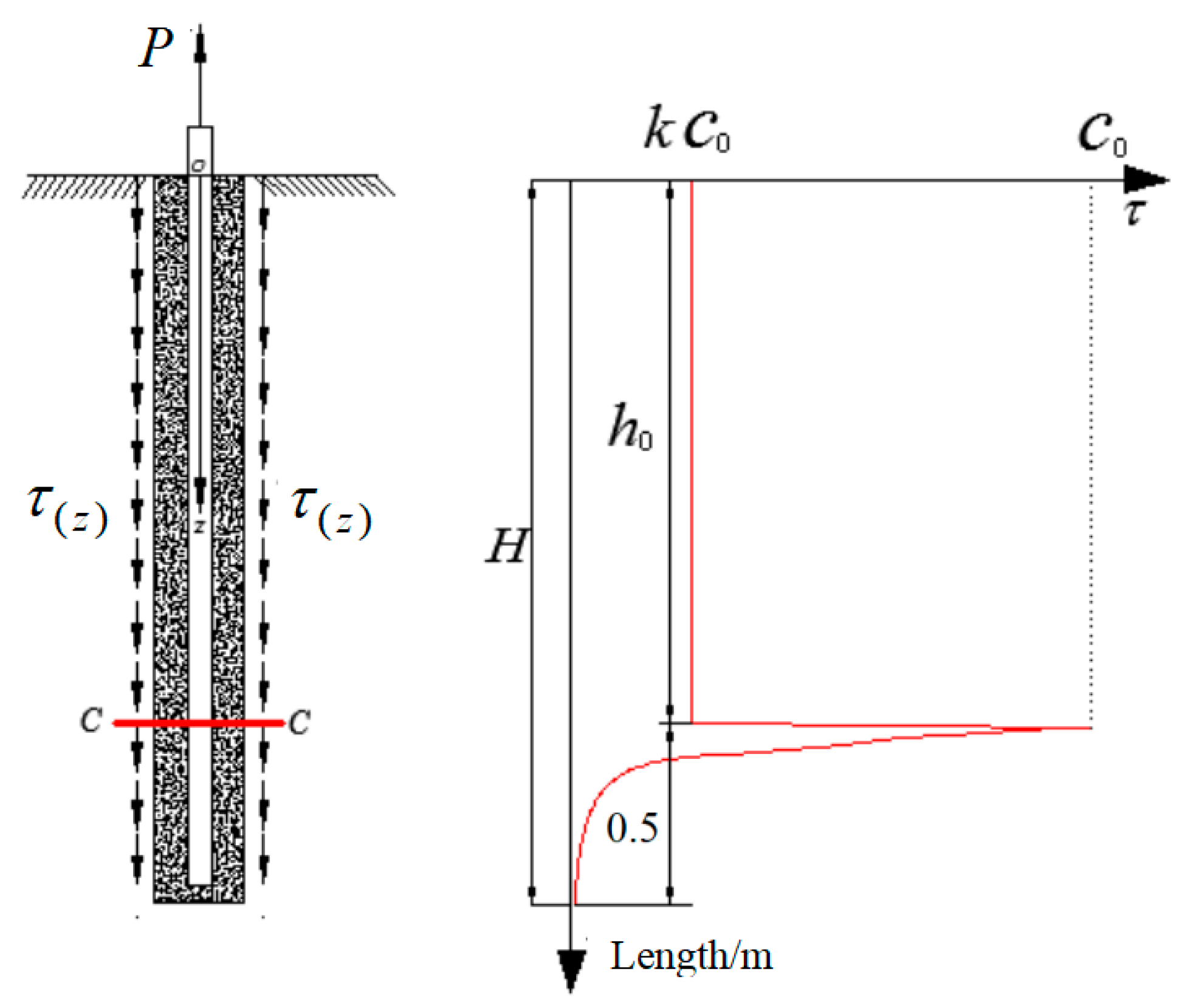 We introduce the concept of the load ratio of the anchorage body. Assuming the length of the anchorage body is l and its radius is r , we treat the anchorage body as a separate entity. Based on the static equilibrium conditions of the anchorage body, we can express: