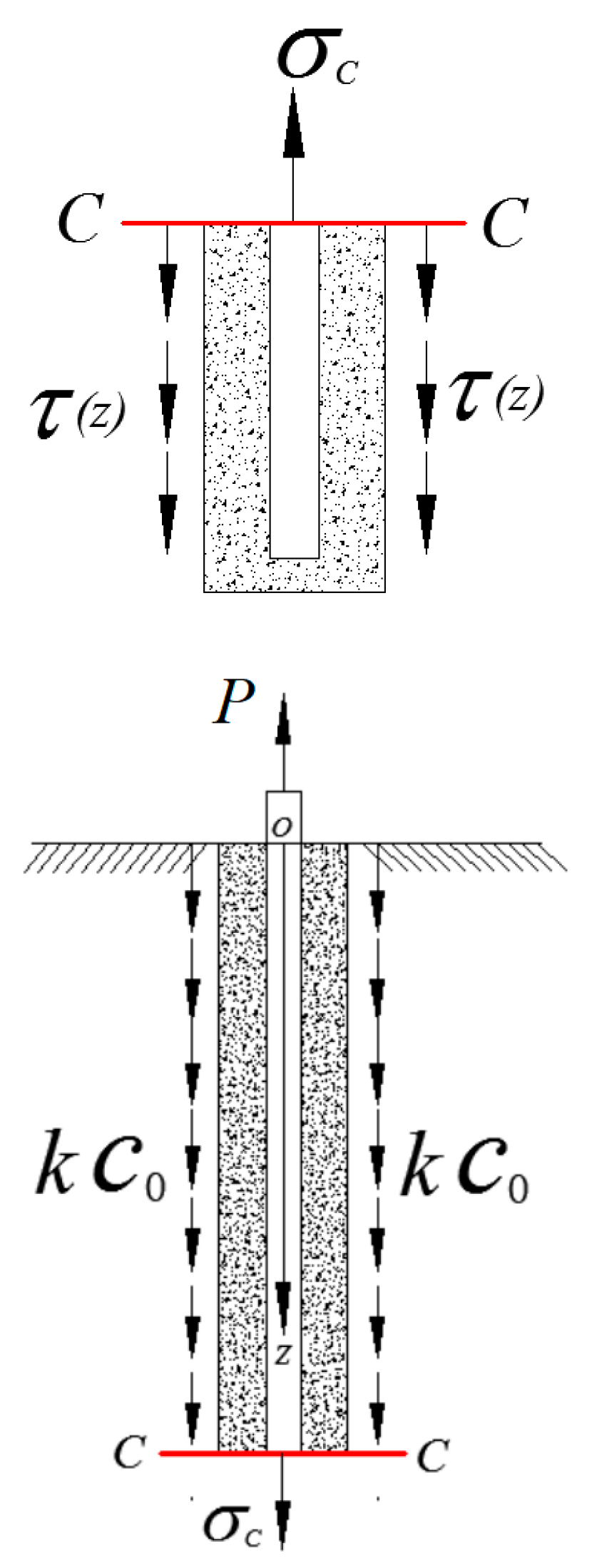 2.1. Elastic Analytical Solution of Prestressed Rock Anchors Under Uplift Force