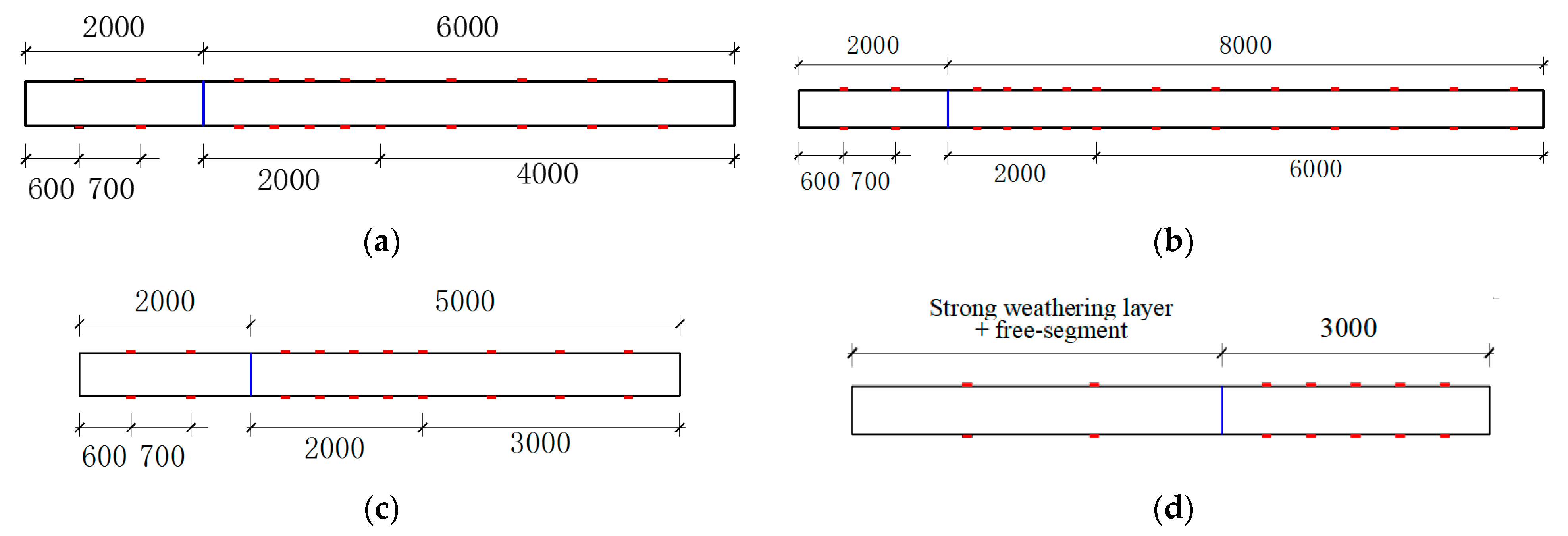 3.1. Distribution Characteristics of Bond Strength at the Anchorage-Rock Interface and Definition of Effective Anchorage Length