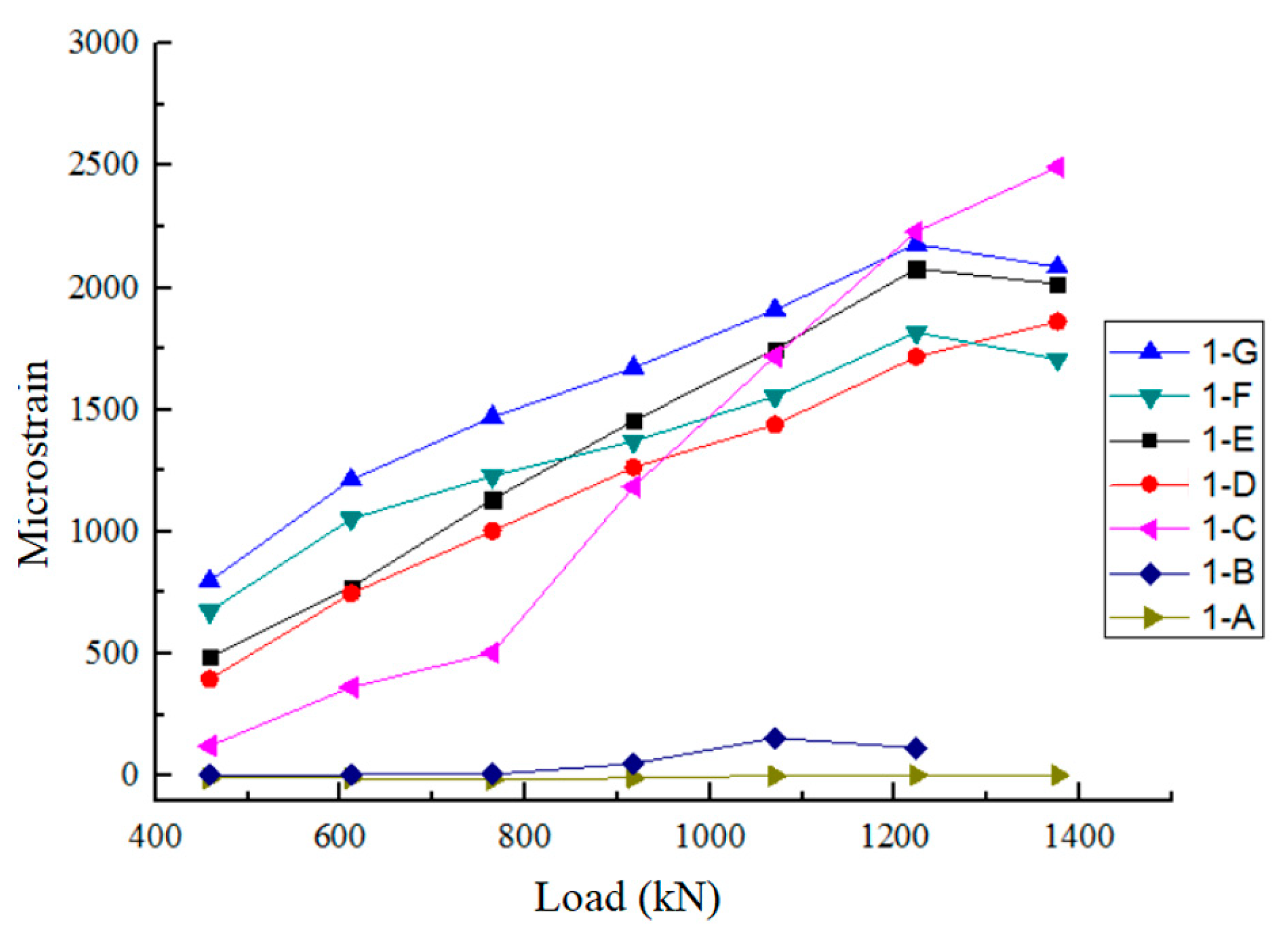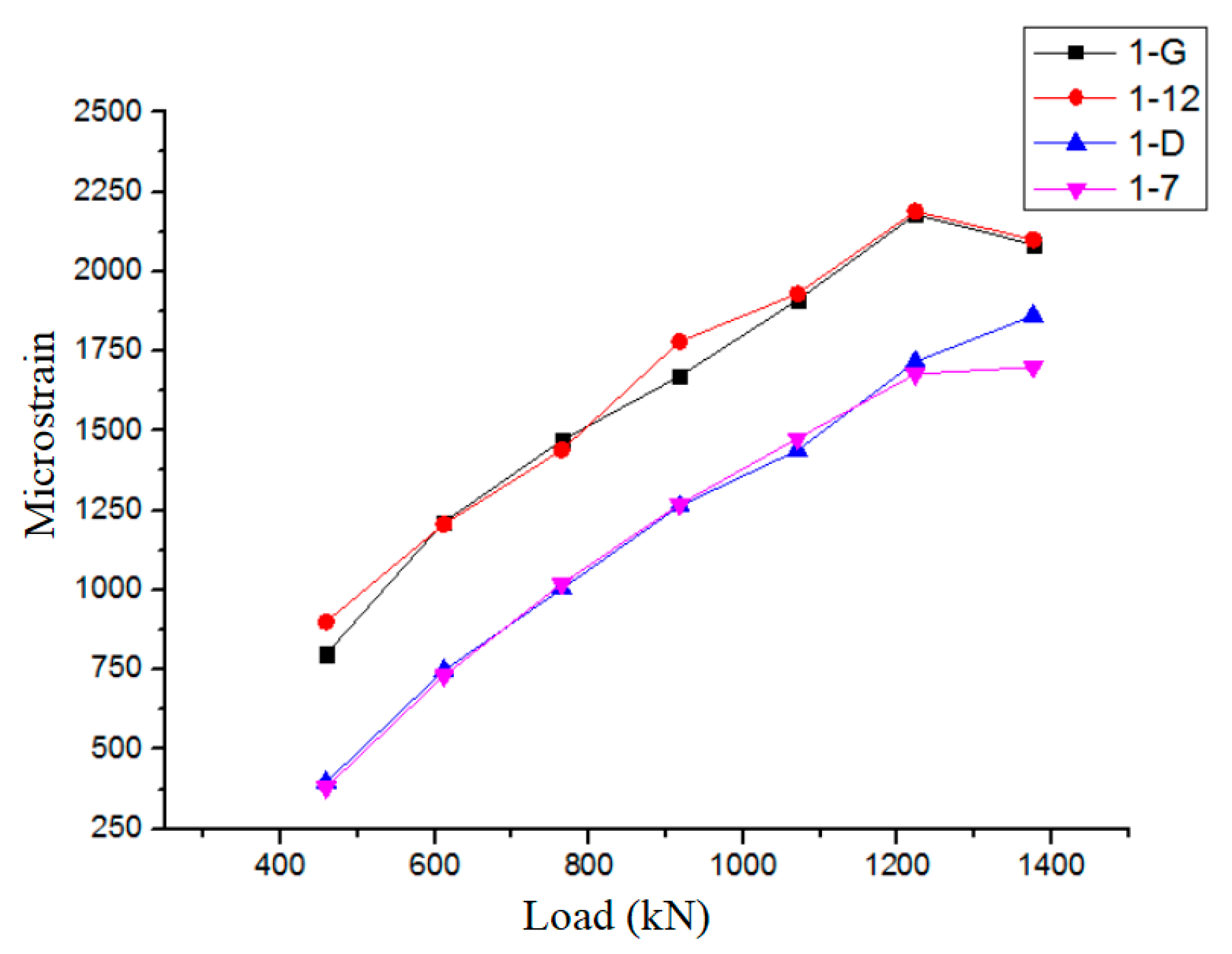 Figure 23. Load-strain curve for concrete strain gauges for Anchor 11.
