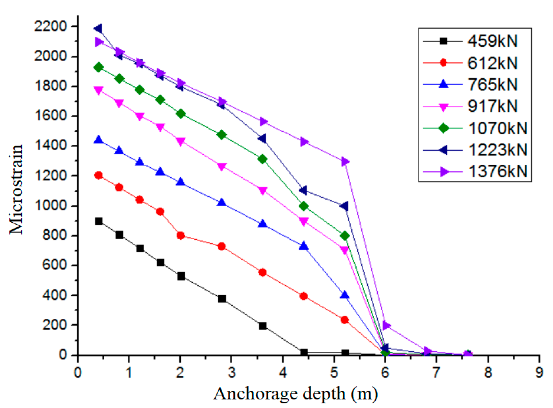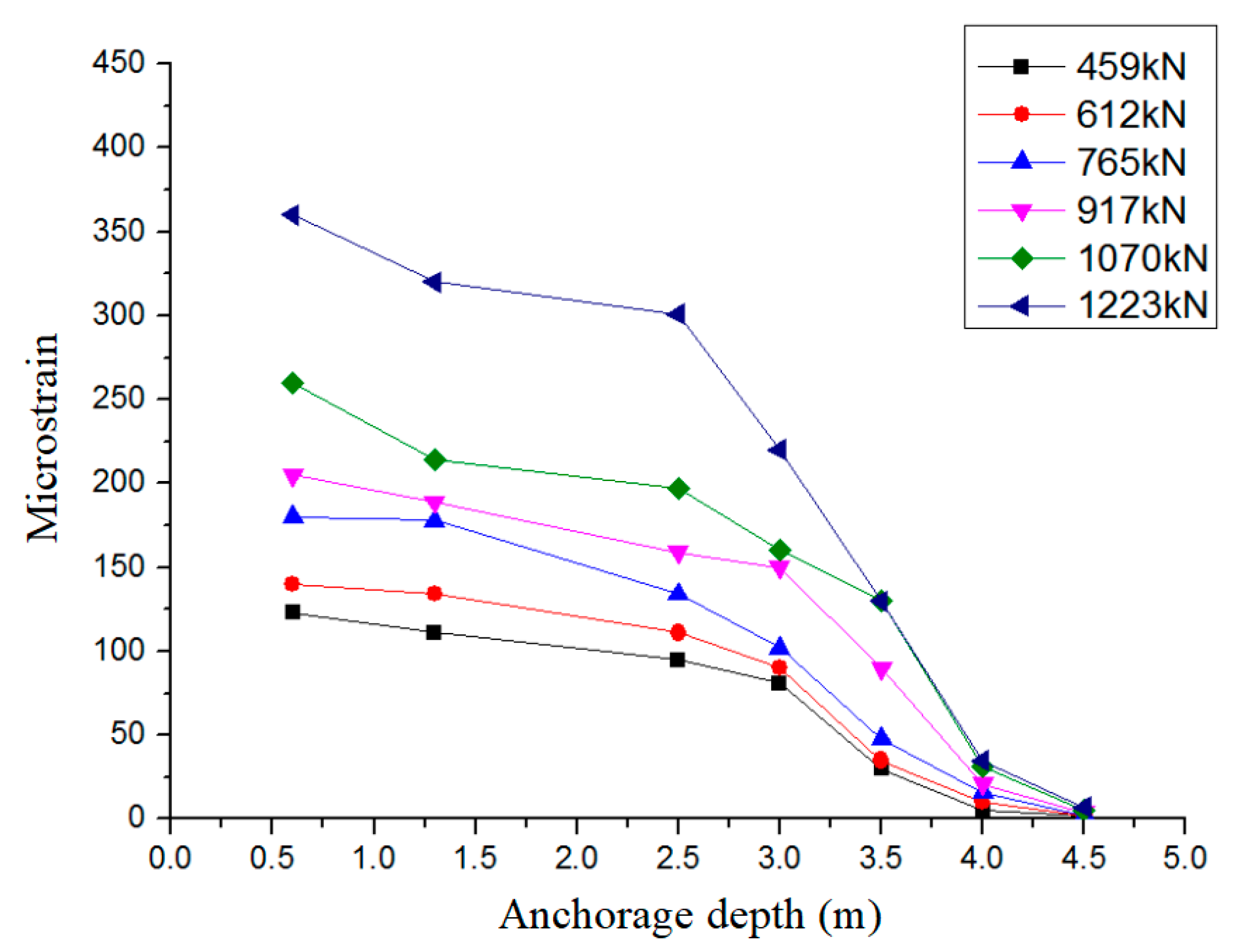 No.Anchorage Depth (m) Free Length (m)Loading MethodLoad Capacity (kN)