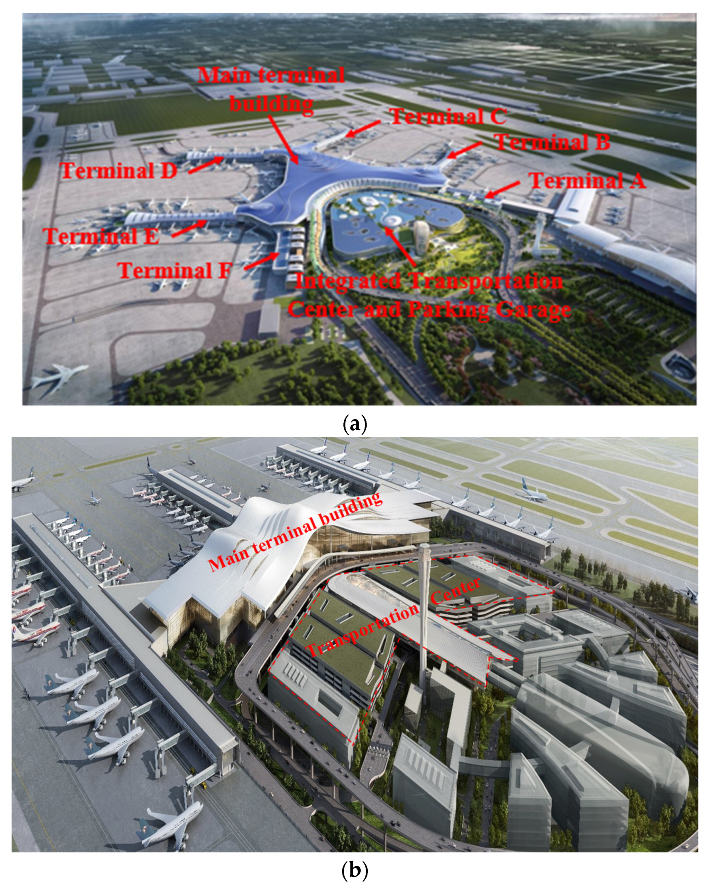 Aerial view of the airport. (a) Jinan Yaoqiang International Airport, (b) Urumqi Tianshan International Airport.