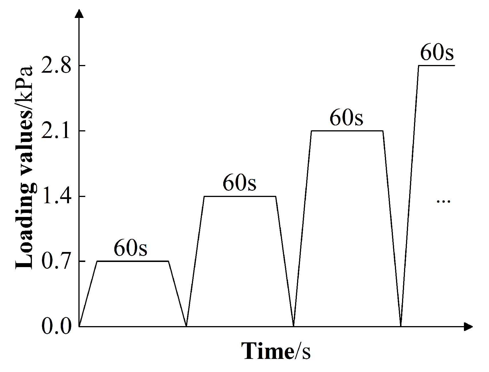 Dynamic loading scheme: stage-by-stage loading ratios and number of cycles.