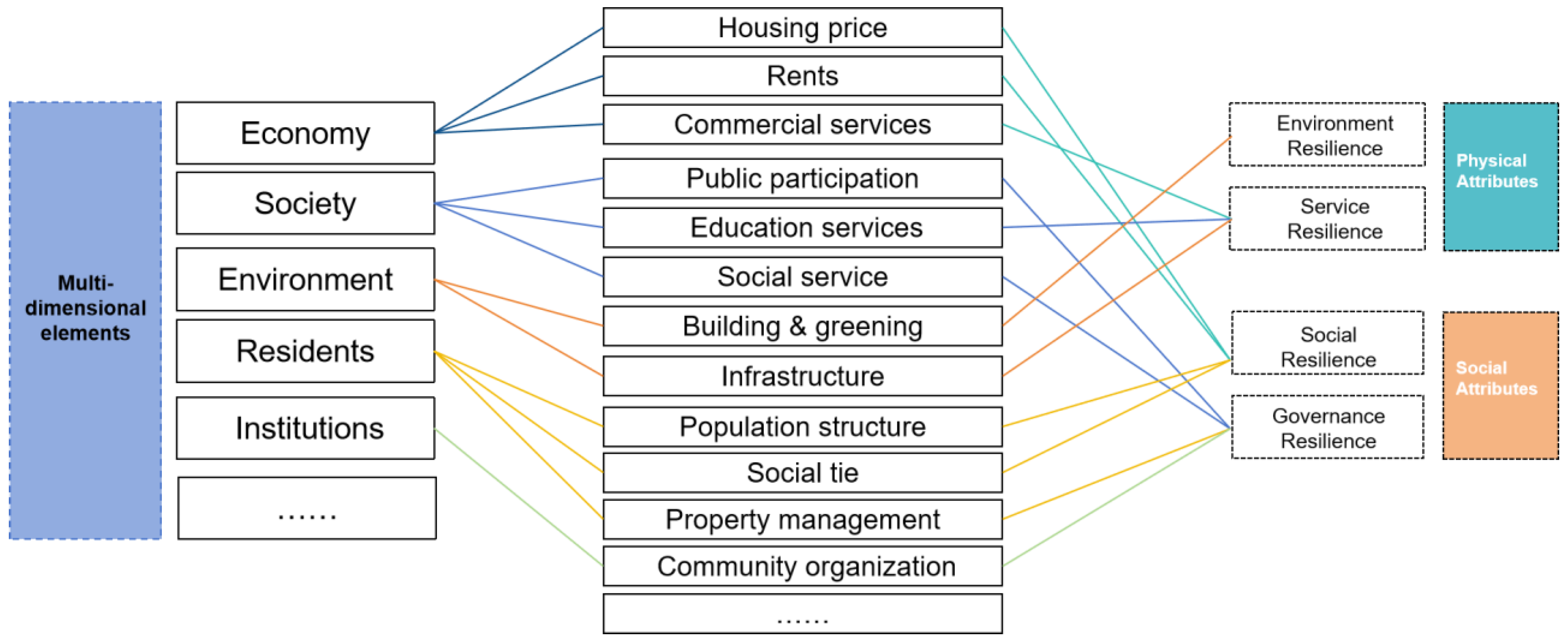 | Dong X.; Cai J. (2024) [28] | Institutional resilience, organizational resilience, technology resilience, physical resilience | Institutional, structural, technical and physical factors can enhance or weaken governance performance; a complex heterogeneous connection between the intervention of community social capital and multiple resilience indicators. |