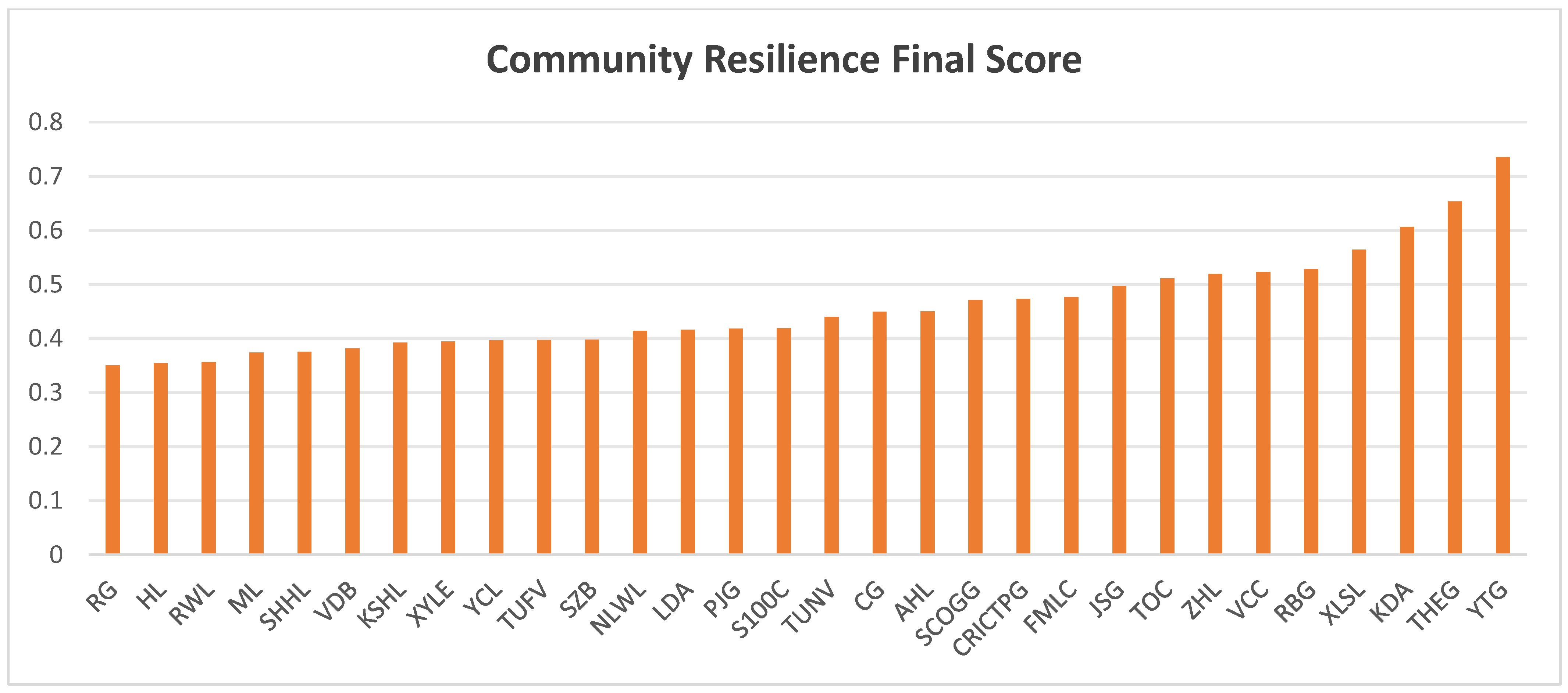 3.3. Comparing Three Types of Communities by Resilience Dimensions