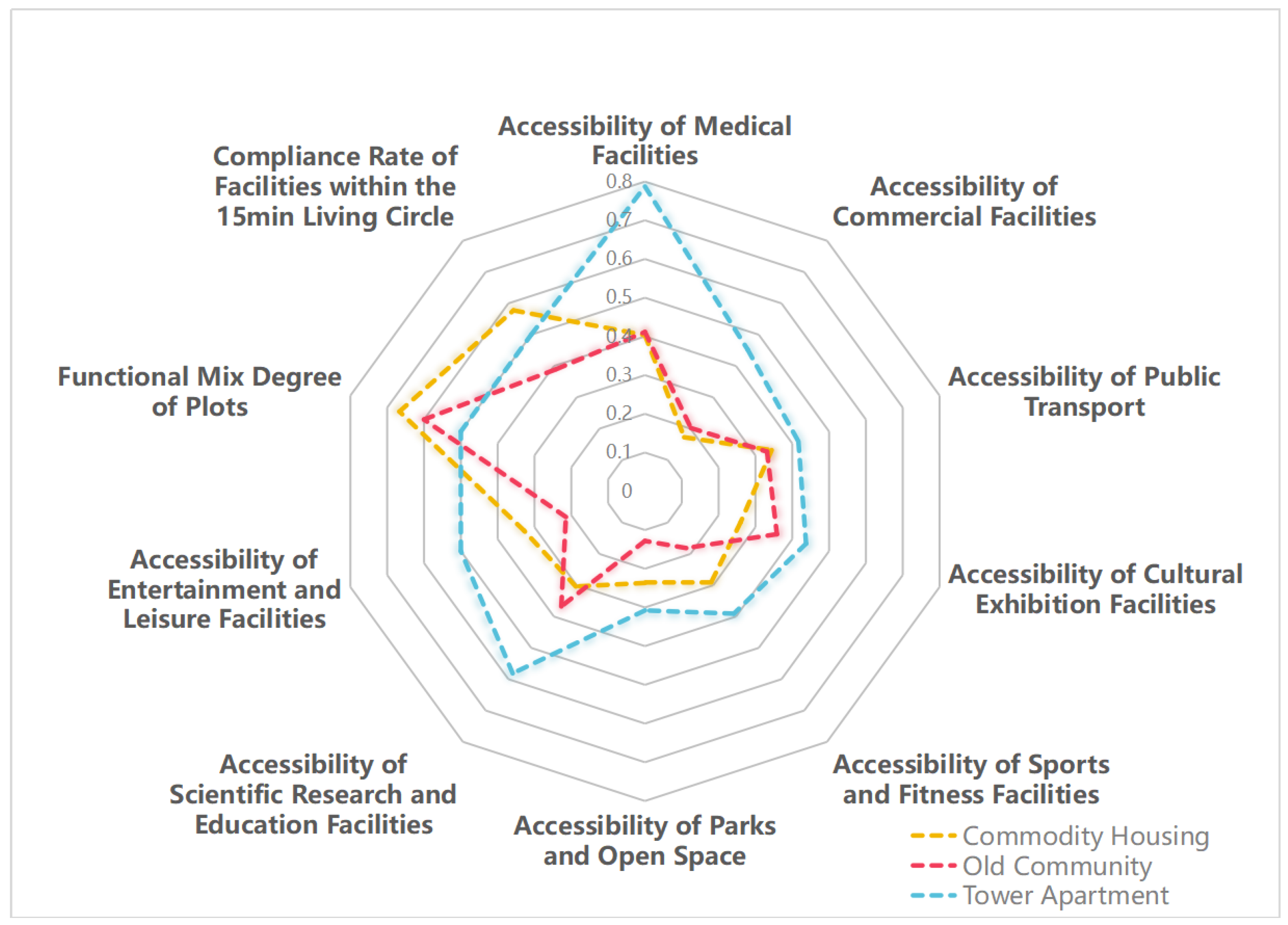 - Commodity housing estate (X3): These are residential communities developed and sold through formal channels since housing reforms. Built more recently, they incorporated advanced planning concepts, focusing mainly on medium and high-rise buildings, with relatively high floor area ratios and comprehensive supporting facilities.