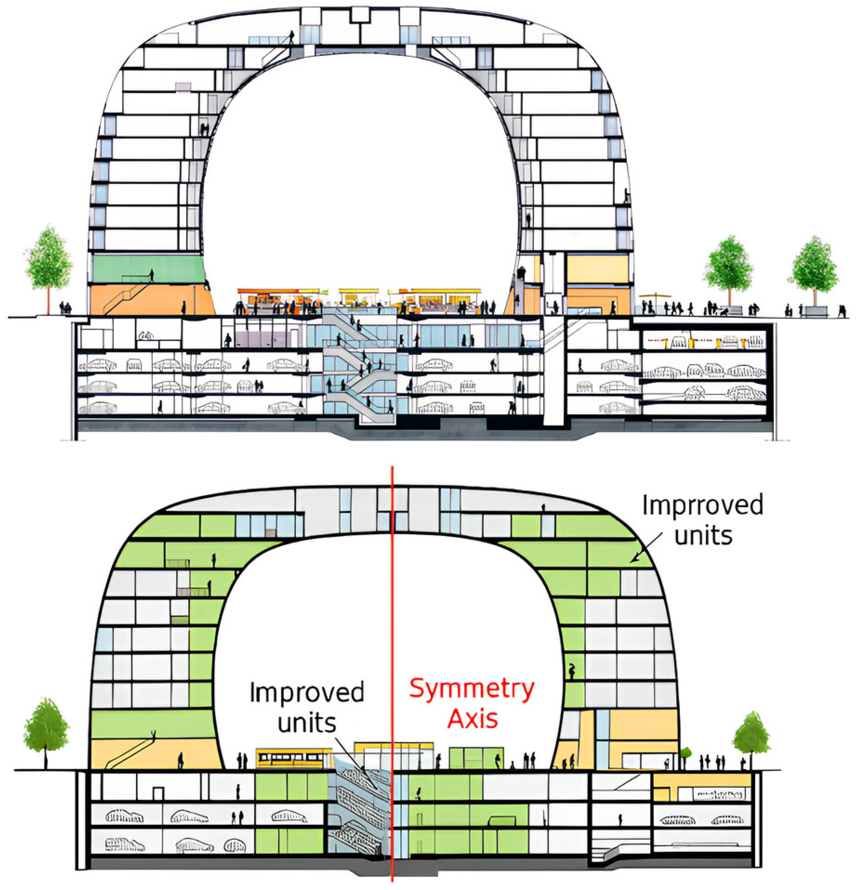 15], was adapted for buildings by treating structural elements as atoms and normalizing results by floor scale. This enables a consistent percentage-based symmetry score across buildings of varying sizes.