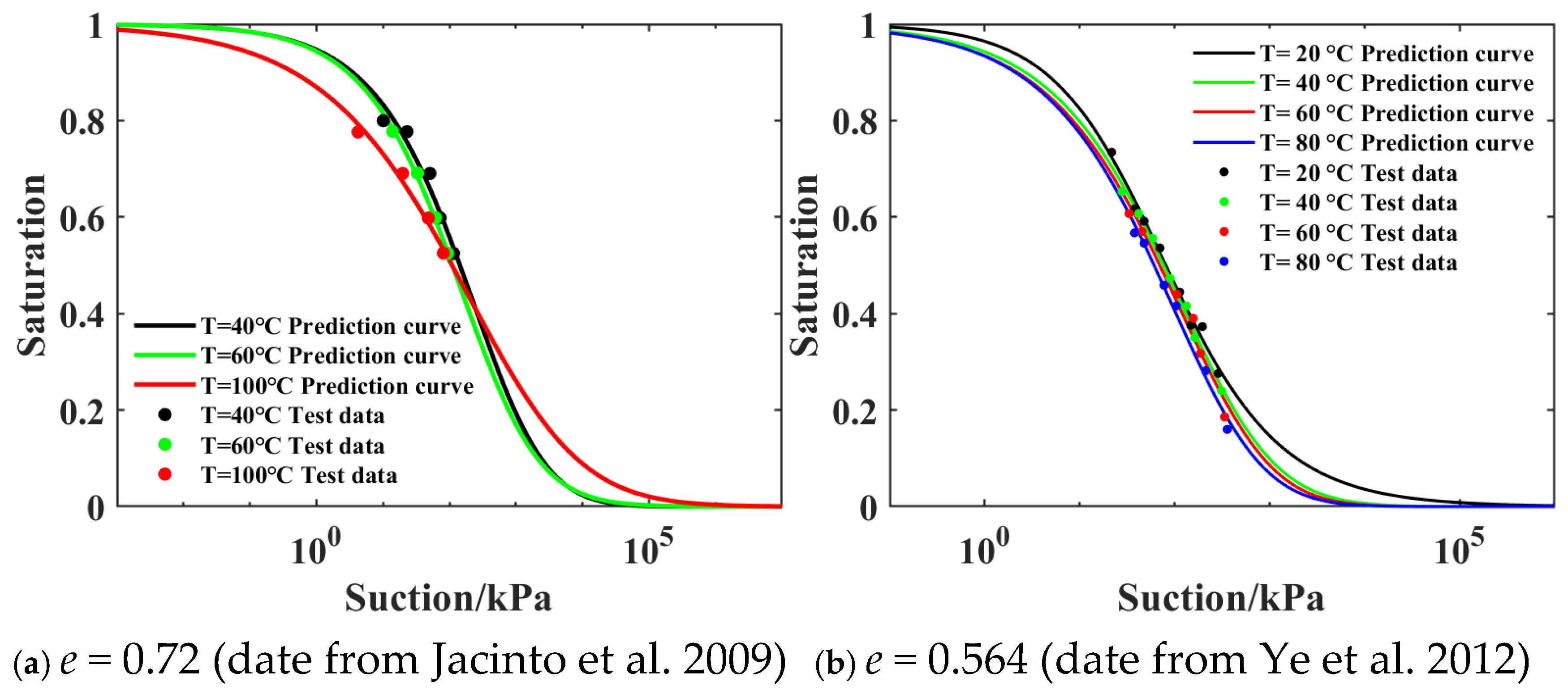 - Xiao, Y.; Liu, S.; Shi, J.Q.; Liang, F.; Zaman, M. Temperature-Dependent SWCC Model for Unsaturated Soil. Int. J. Geomech. 2024, 24, 04024071. [Google Scholar] [CrossRef]