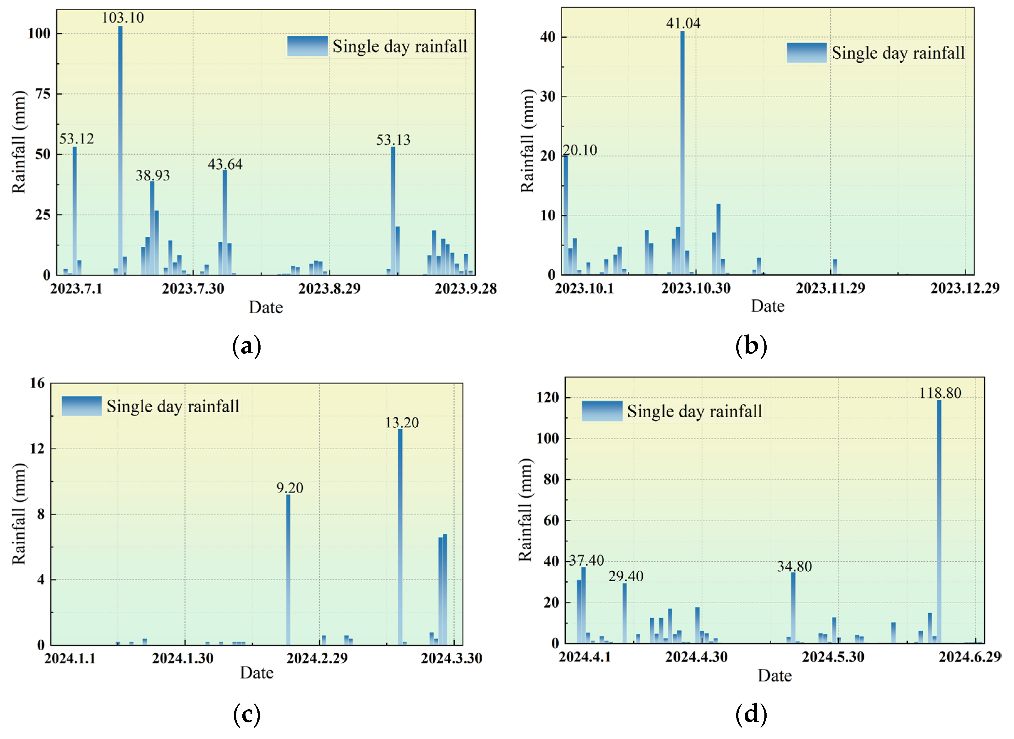 | Date of Heavy Rainfall | Maximum Rainfall per Hour (mm) | Duration of Heavy Rainfall (h) |