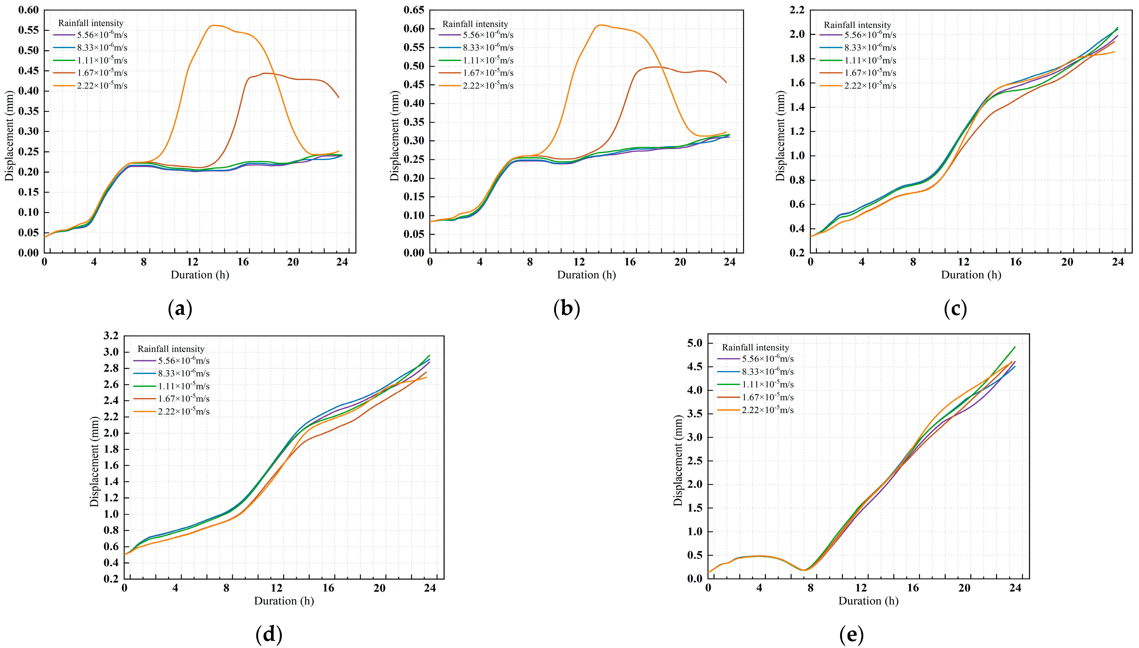 4.1.2. Effects of Rainfall Intensity on Displacements of Secondary Linings