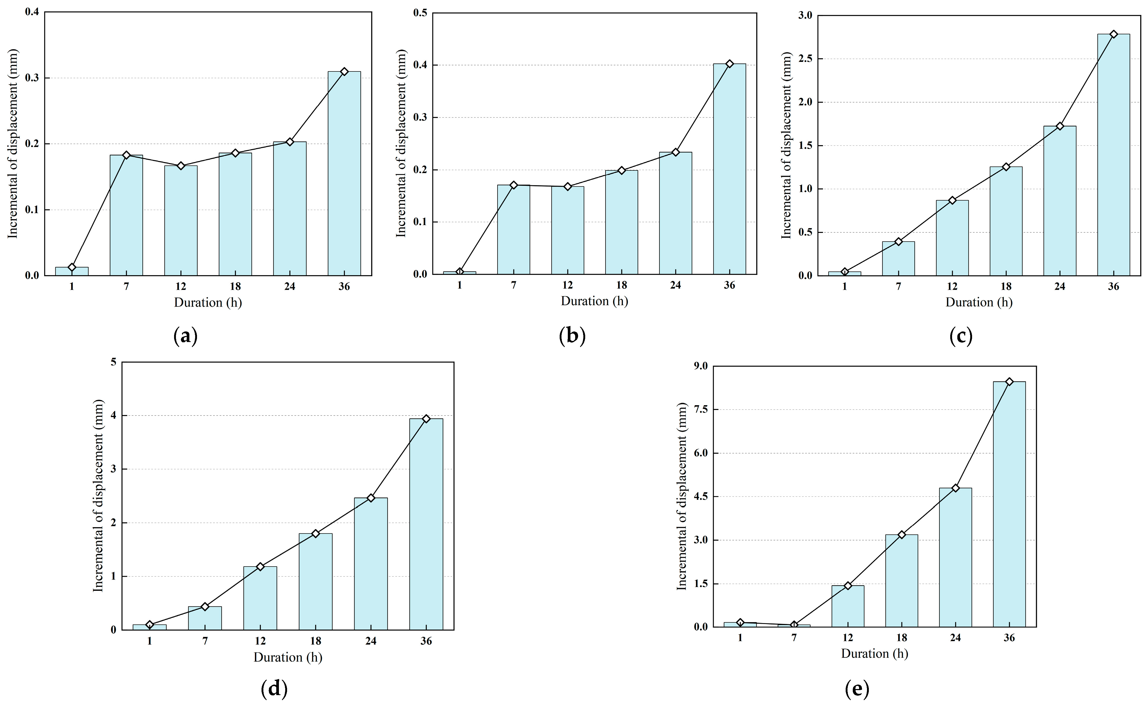 4.2.2. Effects of Rainfall Duration on Displacements of Secondary Linings