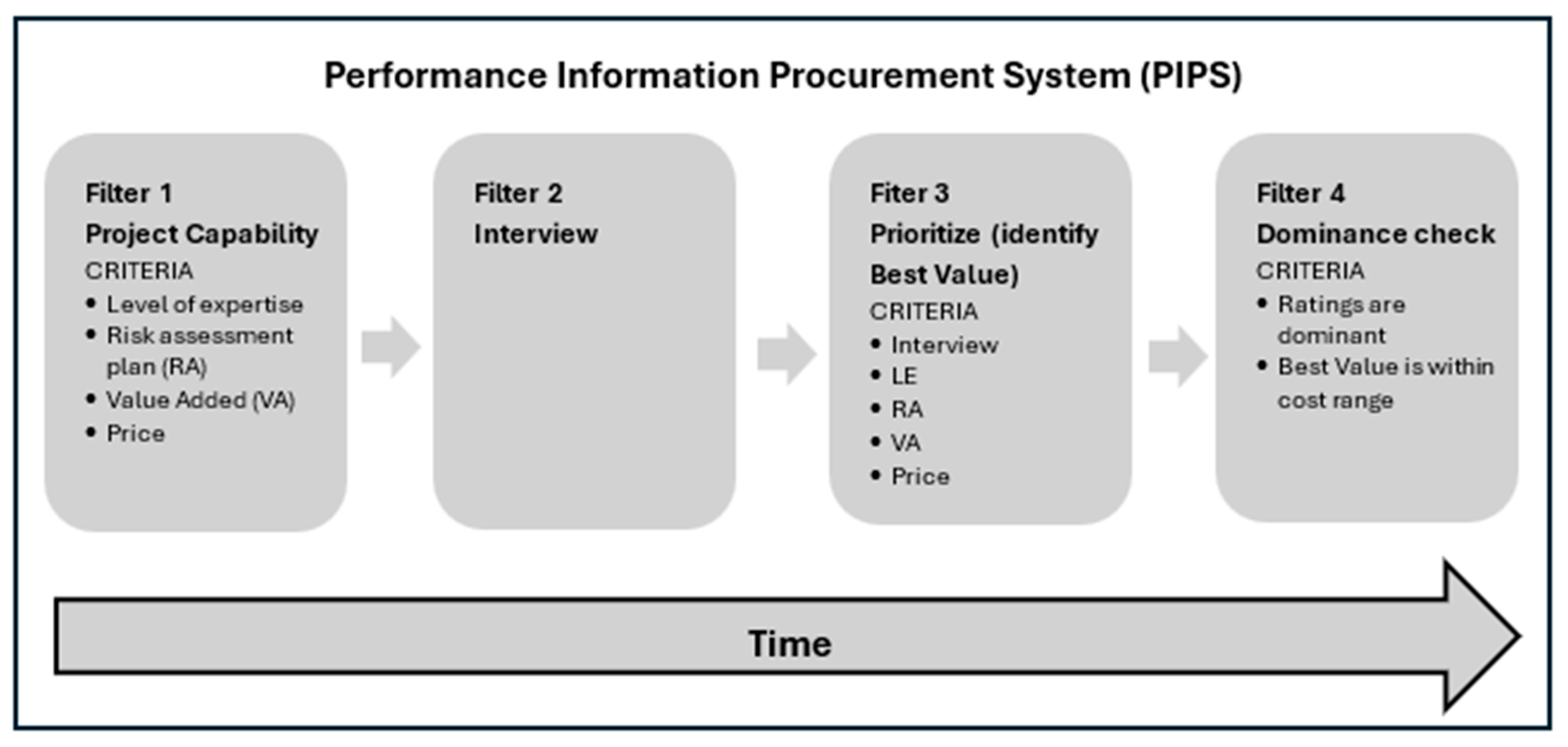 The procedure for conducting a tender can be graphically represented as the so-called Performance Information Procurement System (PIPS). The basic principle of the PIPS is shown in